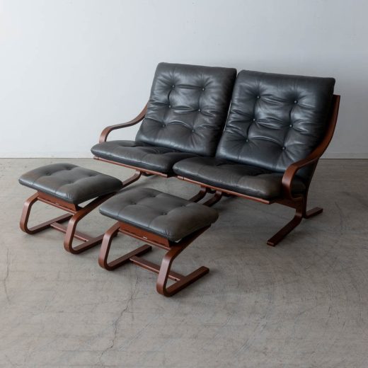 [リユース品]Agioワイド 左肘ソファ+右肘ソファ+スツール×2 ブラックチェリー材 BC色 総本革エージングオイル OL80