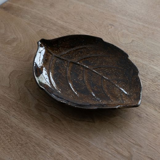 【WEB限定】葉型皿 (大) アメ釉 -器市-