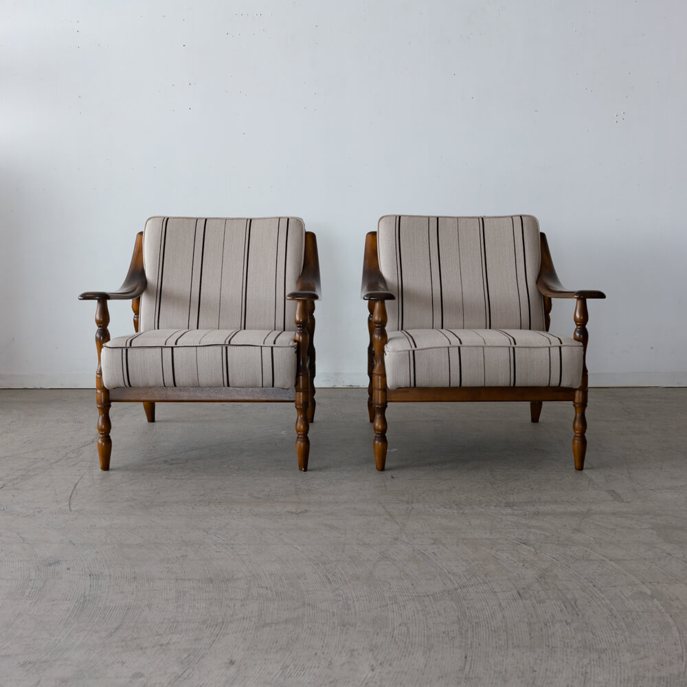 [アップサイクル品]カリモク 1Pソファ 張地:Urd Stripe 37