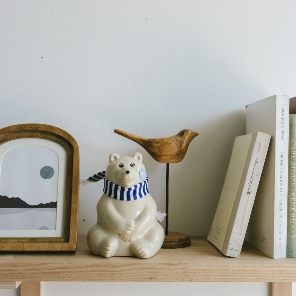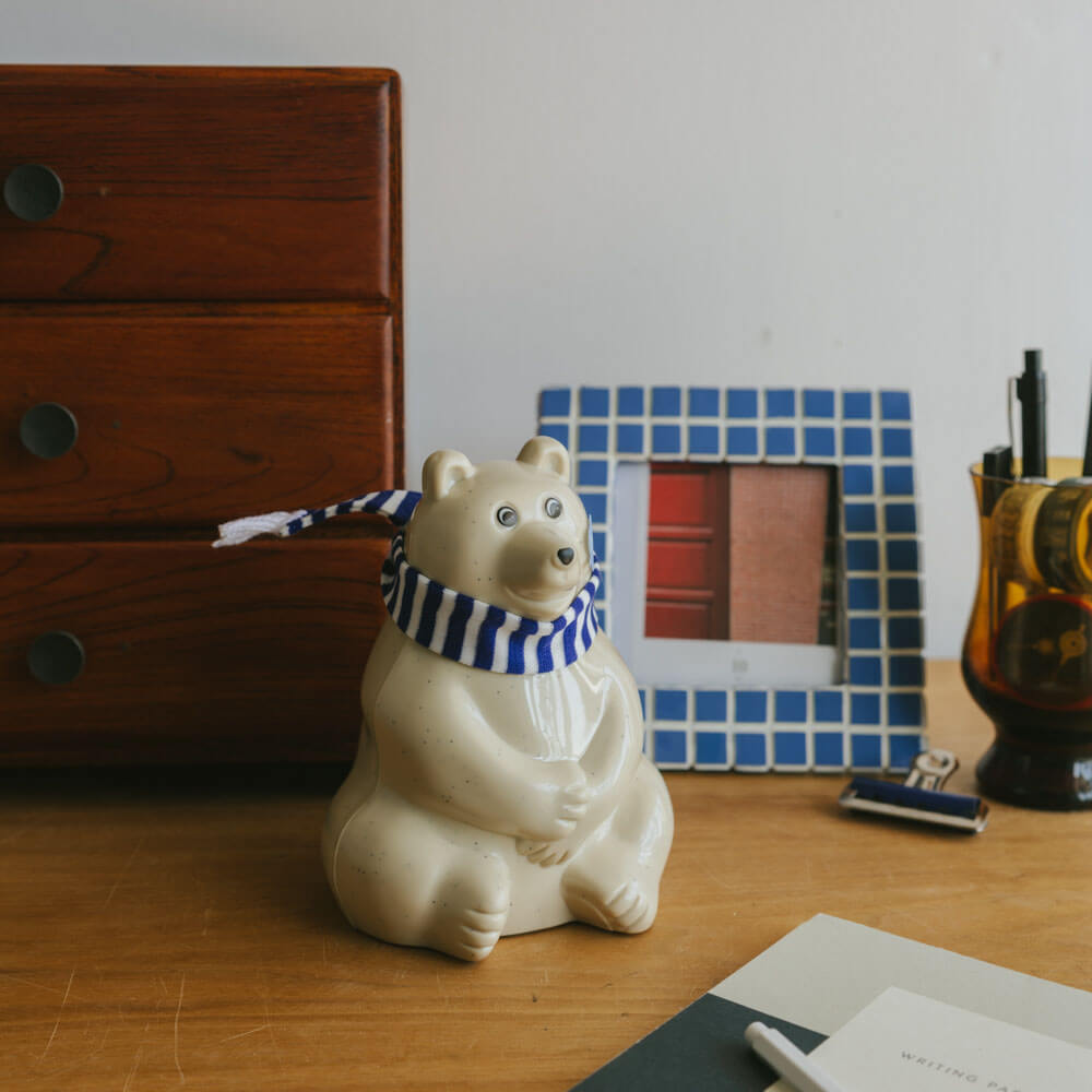 A. もちろんです。しろくま貯金箱は、ひとつ飾るだけで部屋の空気がやさしく変わります。お金を入れるたびにちょっとした楽しさが生まれ、暮らしの中で“お気に入りの存在”になっていきます。マフラーのアレンジもおすすめです。