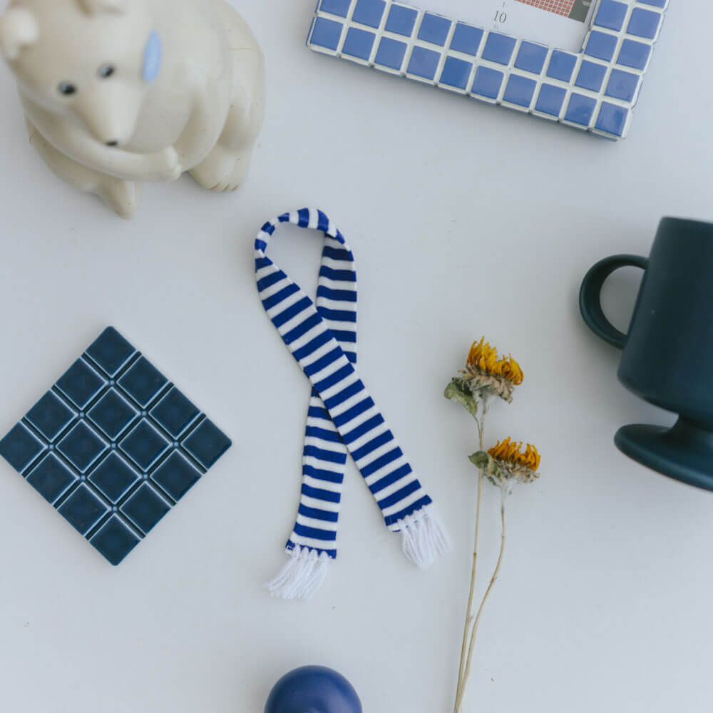 A. 毎年少しずつマフラーの色が変わるので、並べるとまるで北欧テキスタイルのようにリズムや彩りが広がります。「去年の色も買っておけばよかった」と振り返る方も多く、コレクションしていくこと自体が楽しみになります。