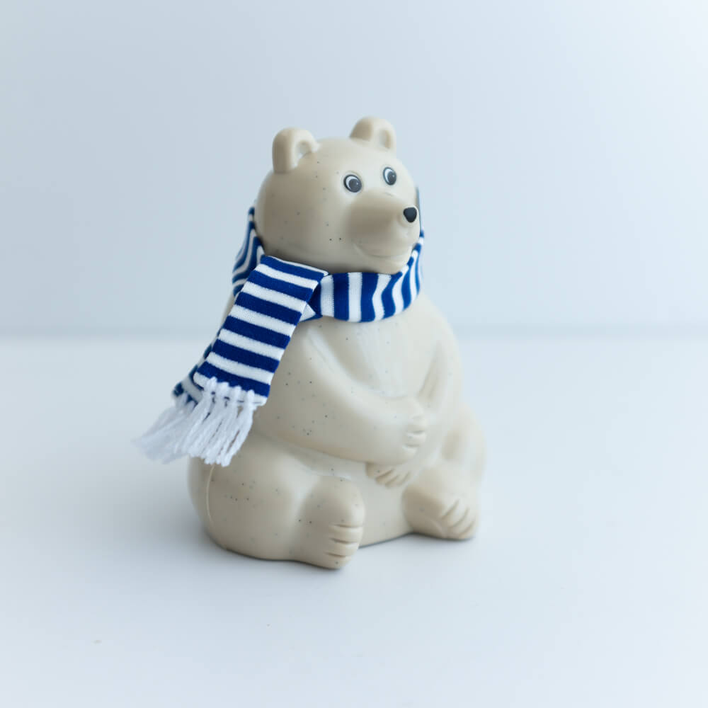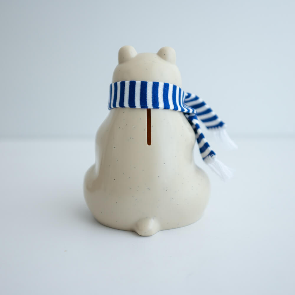 【2025年限定】しろくま貯金箱 ブルーボーダーマフラー