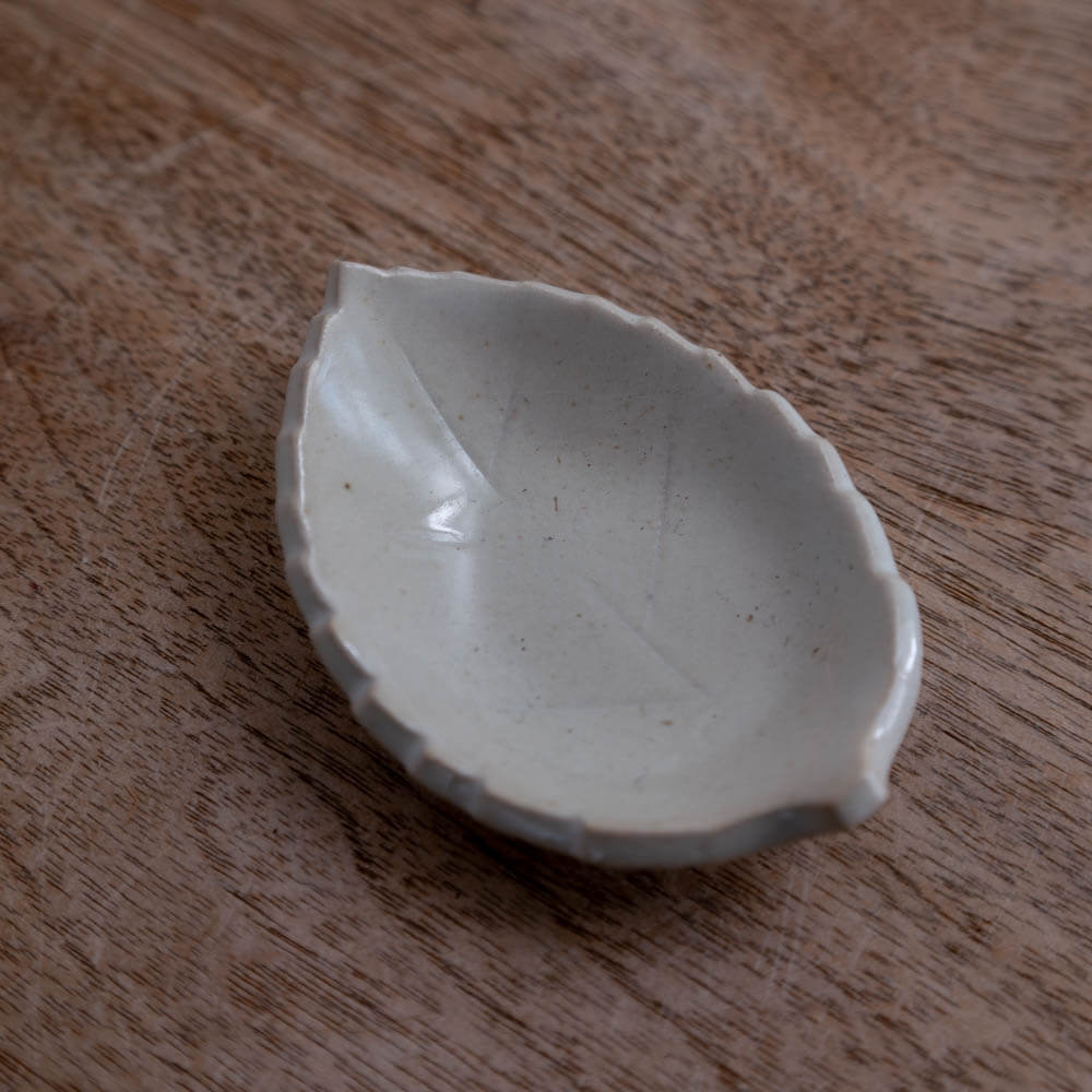 白釉の木の葉豆皿