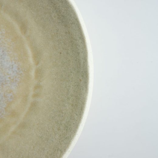 白砂を思わせる繊細な質感と、控えめながらも上品に輝く艶が特徴の和食器です。釉薬の流れや自然な色むらが生み出す奥行きがあります。光の加減によってさりげなく表情を変え、食卓に落ち着いた温かみを添えてくれる一枚です。手触りは滑らかでありながら、細やかな凹凸が施されており、指に心地よい感触を残します。マットな質感の中に、ほんのりとした艶感が加わることで、素朴さと高級感が絶妙に調和します。