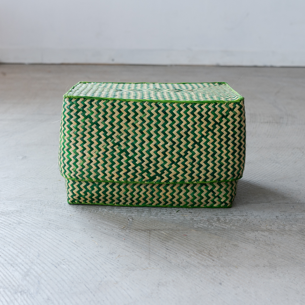 Mサイズは、リモコンや小物類の整理、ストック品の収納、子どものおもちゃ入れなど、多用途に使いやすいサイズ感。鮮やかなグリーンと縁巻きの色使いが、木製家具やナチュラルな空間に調和し、日常に軽やかなアクセントを添えます。