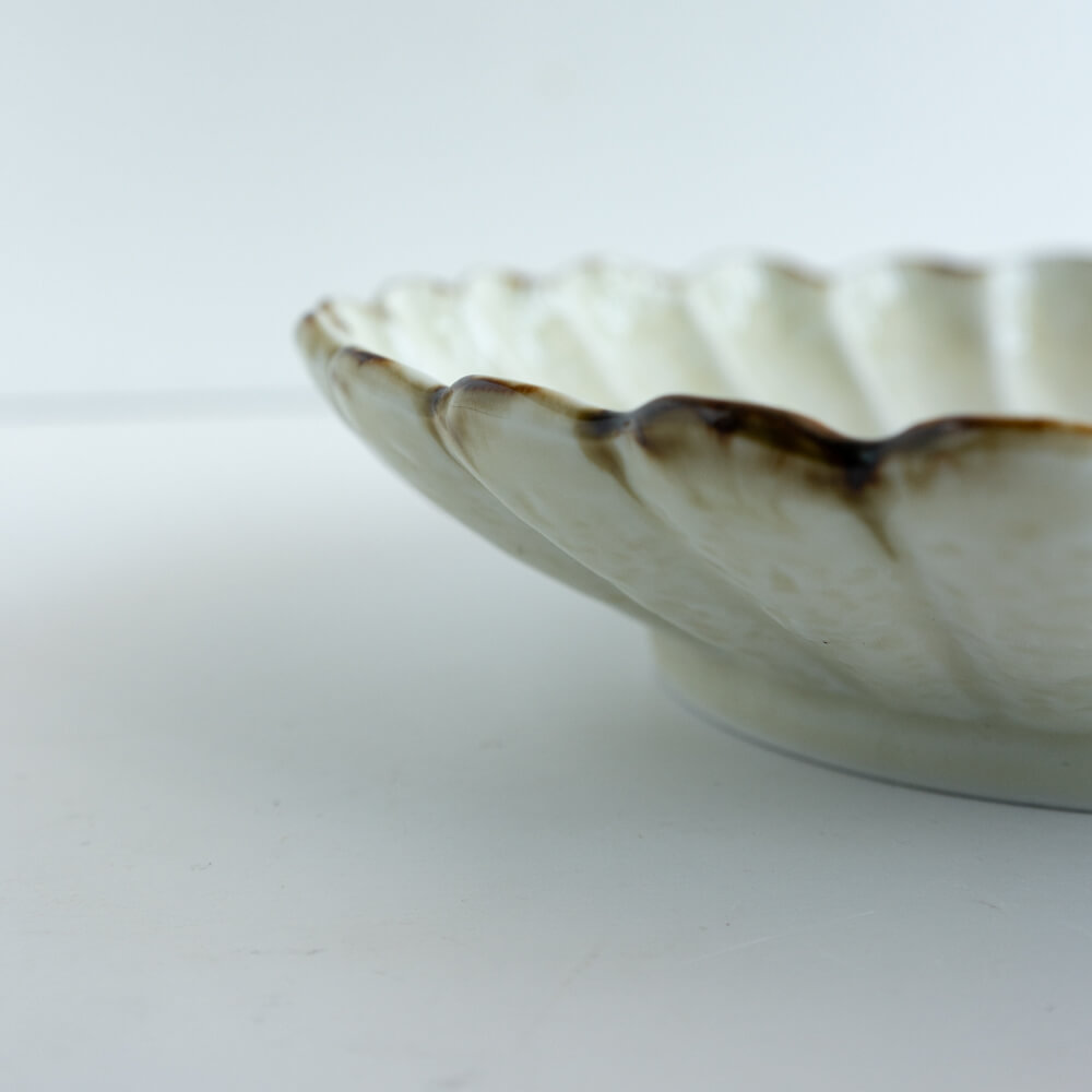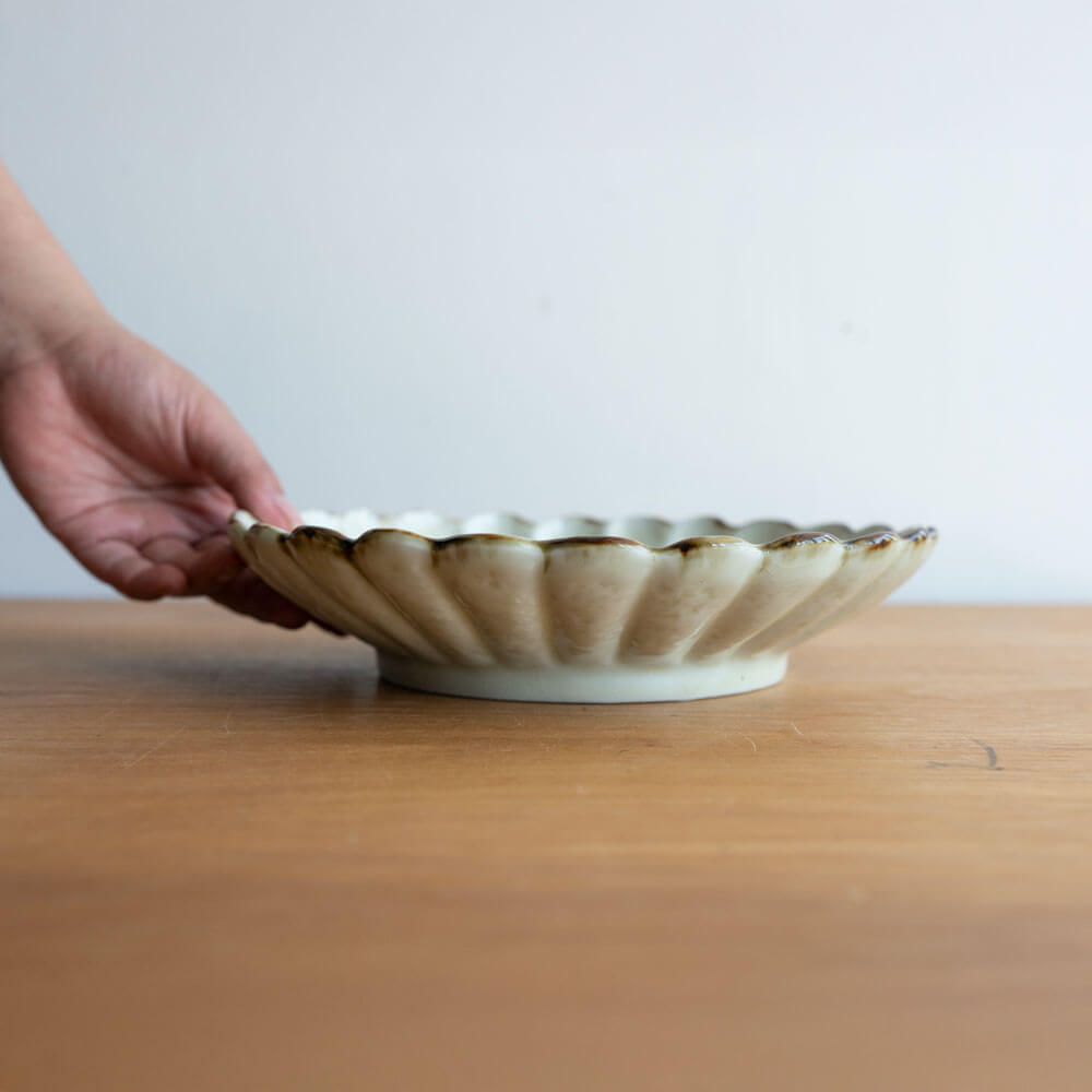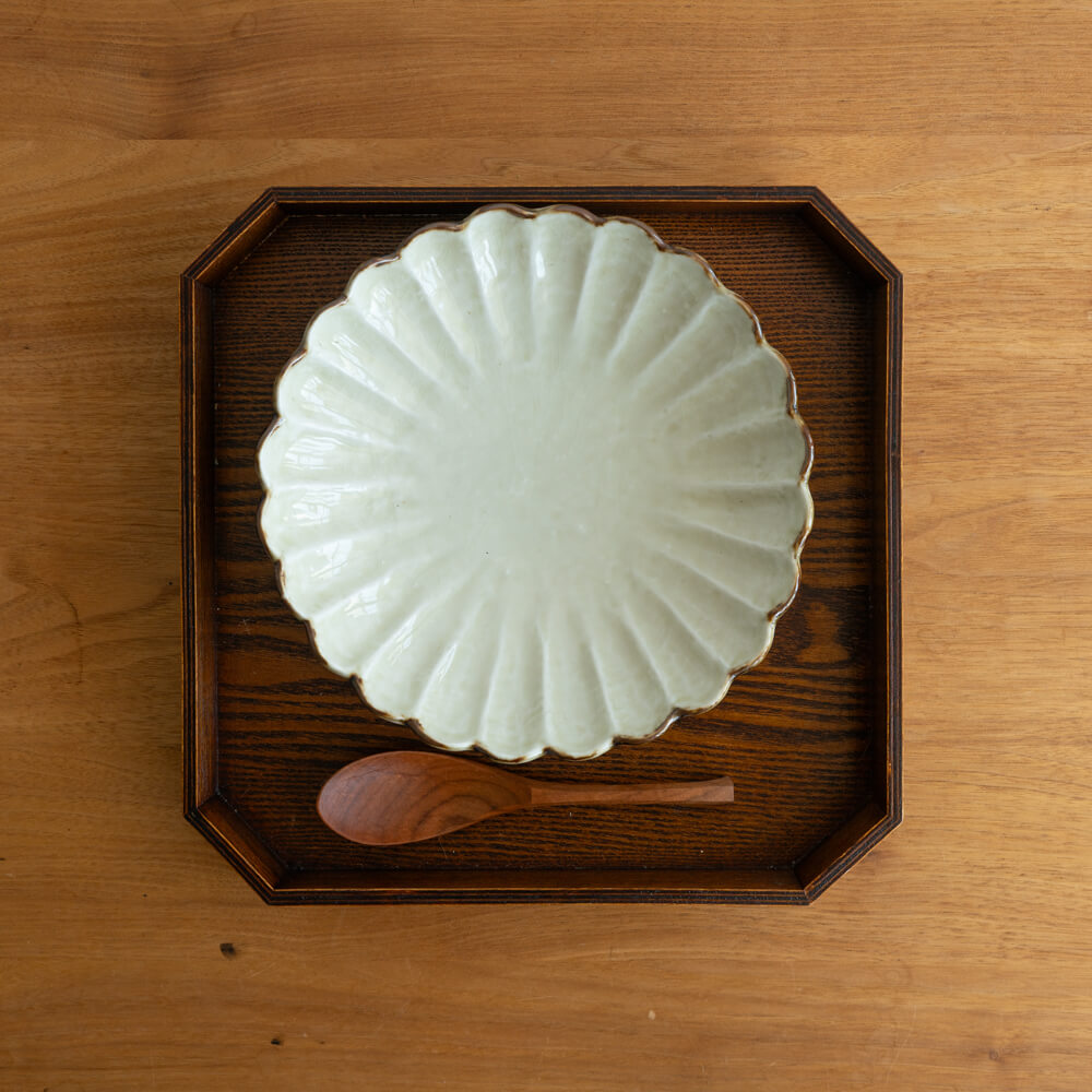 花弁が放射状に広がる菊割のかたち。盛り付けるだけで料理が美しく映える、視覚的な効果があります。和の食卓にしっくりと馴染みつつ、洋のメニューとも調和する万能さも魅力です。