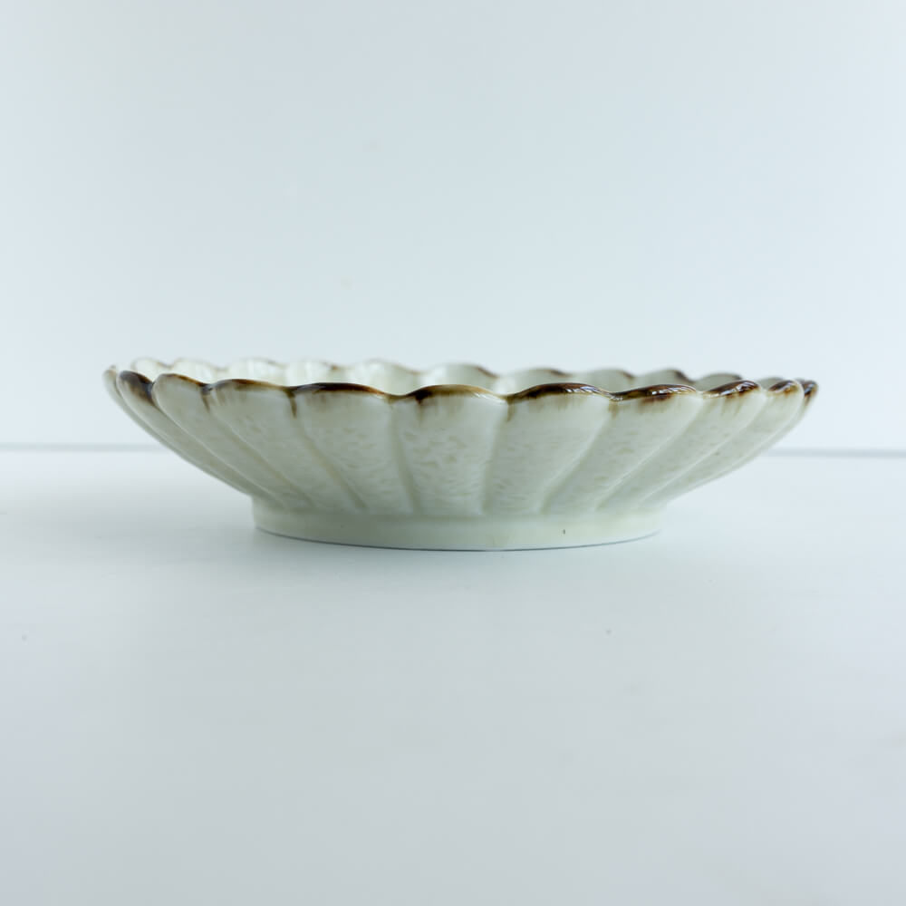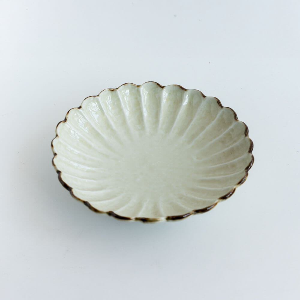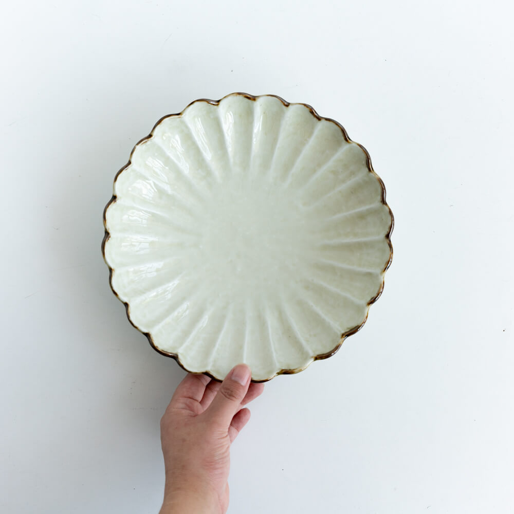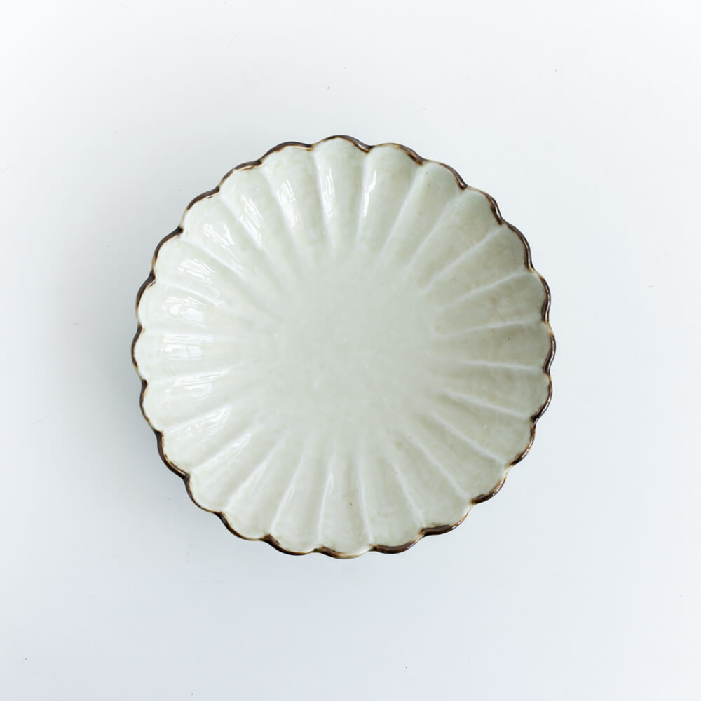 花弁が放射状に広がる菊割のかたち。盛り付けるだけで料理が美しく映える、視覚的な効果があります。和の食卓にしっくりと馴染みつつ、洋のメニューとも調和する万能さも魅力です。