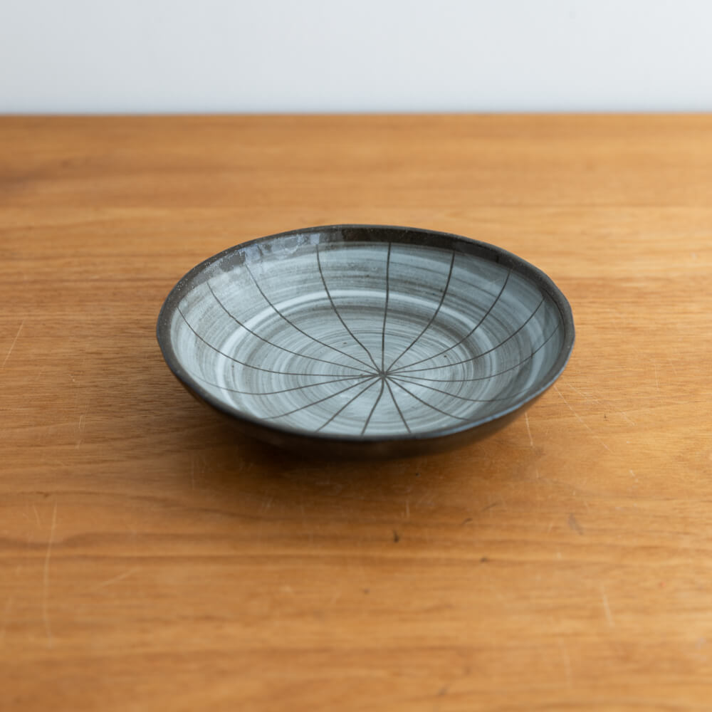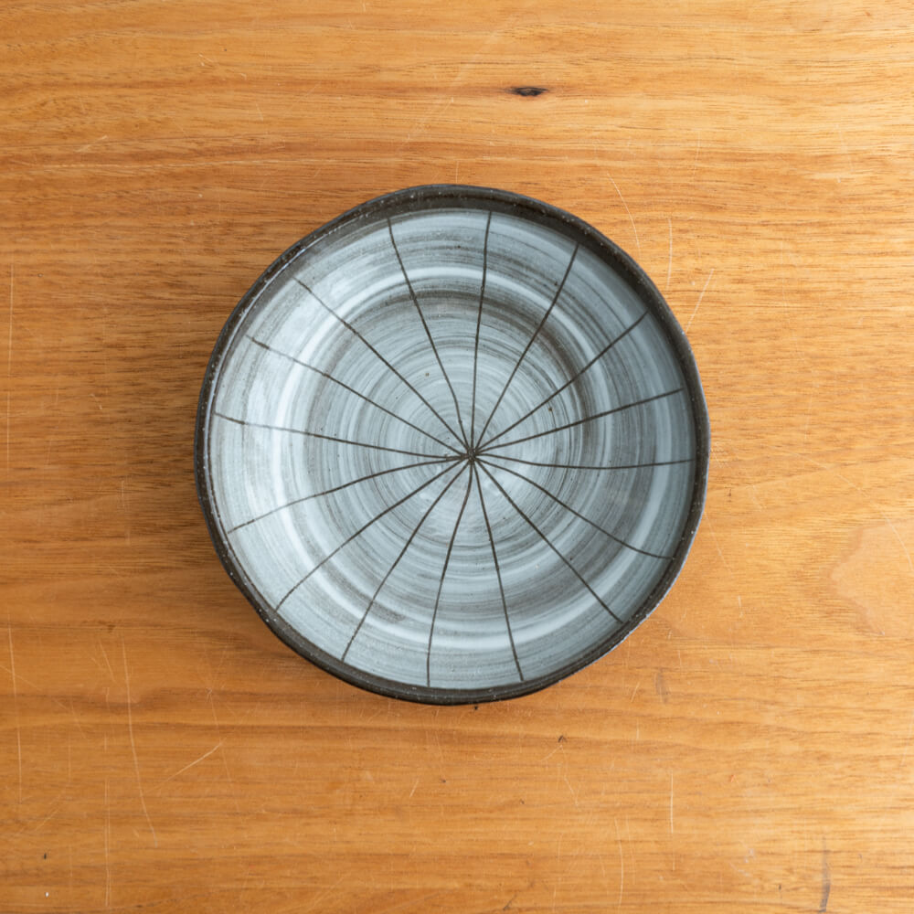ころんとしたやさしい丸みと、中心から放射状に広がる十草模様が特徴の「渦十草 40皿」。一枚あるだけで料理をふんわりと受けとめ、日々の食卓に心地よいアクセントを添えてくれます。