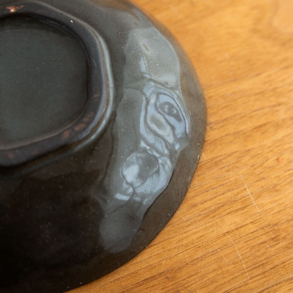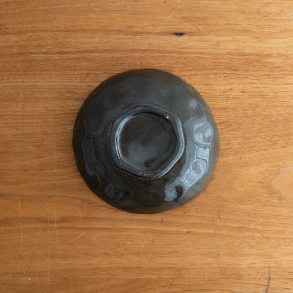 製造工程で生じる細かい傷や色むら、黒点(鉄粉)などが見られる場合がありますが、それも焼き物ならではの味わいの一部。焼成時にできた釉薬の流れ跡や窯傷が残る場合があります。アウトレット品としてお求めやすい価格で提供されているため、気軽に取り入れやすい小皿です。