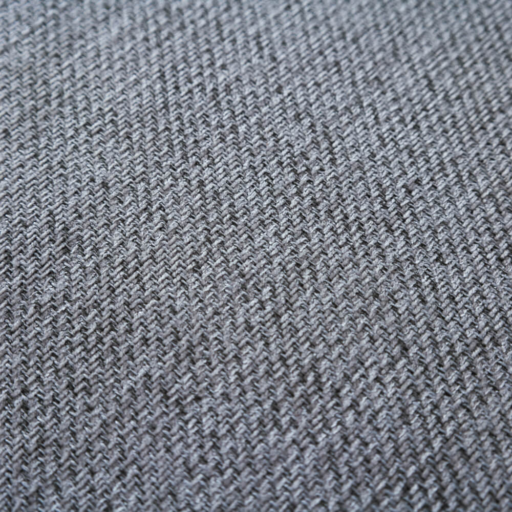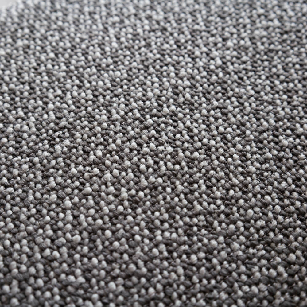 廃番となったランクCの「F756」ファブリックを採用。光沢のあるモール糸をツイル組織で織り上げ、光の角度によって豊かな表情を見せます。繊維の凹凸が控えめで、落ち着きのある風合いを持ちながらも光の角度によって上品に輝きます。ポリエステル100%で扱いやすく、グレートーンの落ち着きが空間にモダンなニュアンスを添えます。