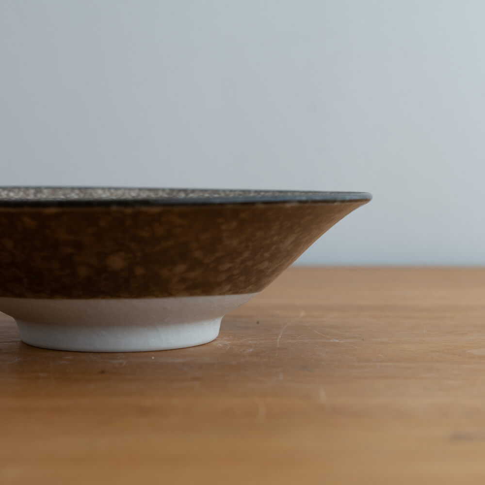 製造工程で生じる 細かい傷や色むら、黒点(鉄粉)などが見られる場合がありますが、それも焼き物ならではの味わいの一部。アウトレット品としてお求めやすい価格で提供されているため、気軽に取り入れやすい平鉢です。