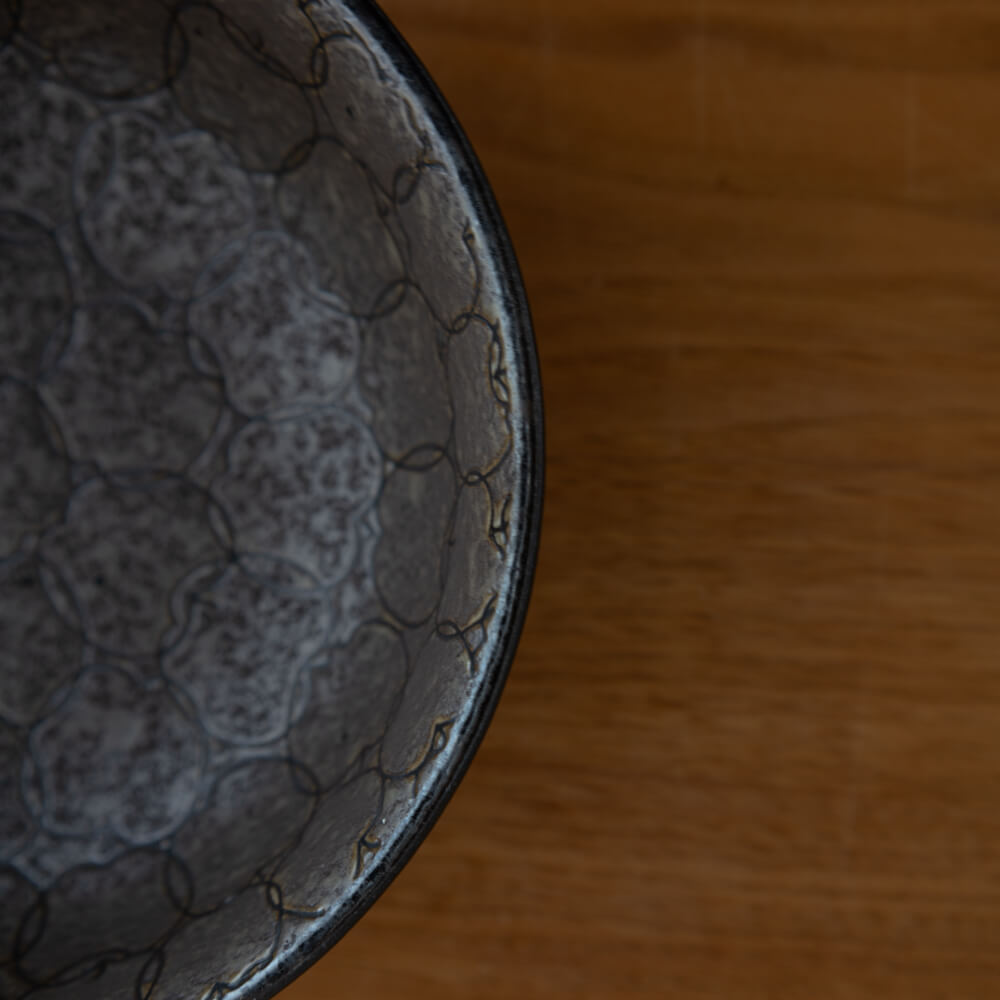 外側は黒の落ち着いた仕上げ。和洋を問わず料理を引き立て、空間全体をモダンに演出します。カラフルな食材がより鮮やかに映えるのも黒い器ならではの魅力です。