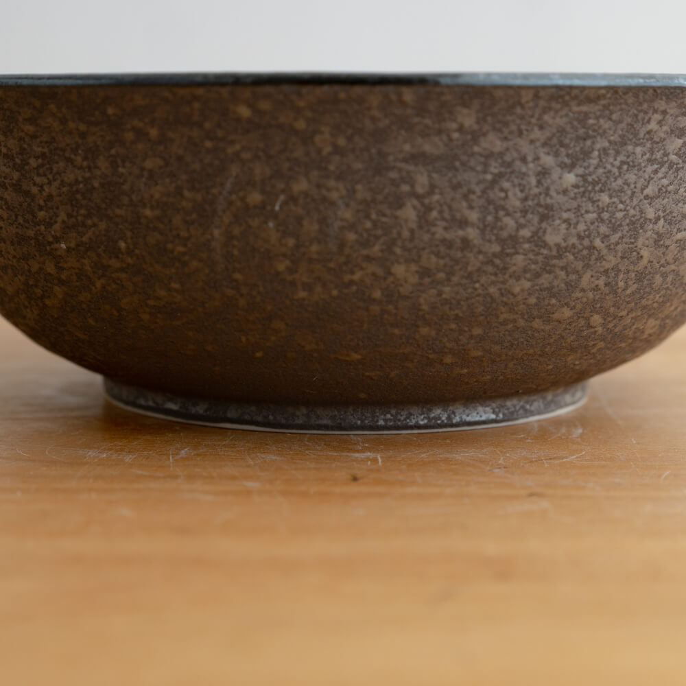 製造工程で生じる 細かい傷や色むら、黒点(鉄粉)などが見られる場合がありますが、それも焼き物ならではの味わいの一部。アウトレット品としてお求めやすい価格で提供されているため、気軽に取り入れやすい深口ボウルです。