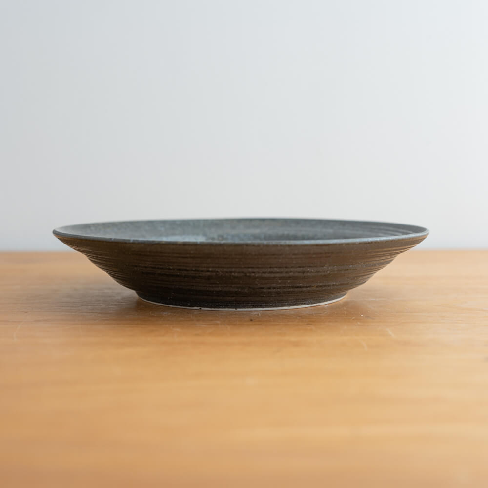 表面には轆轤目のラインが美しく刻まれ、釉薬の濃淡とともに力強い存在感を放ちます。まるで器全体が「流れ」を表現しているようで、視覚的なリズムを食卓にもたらします。
