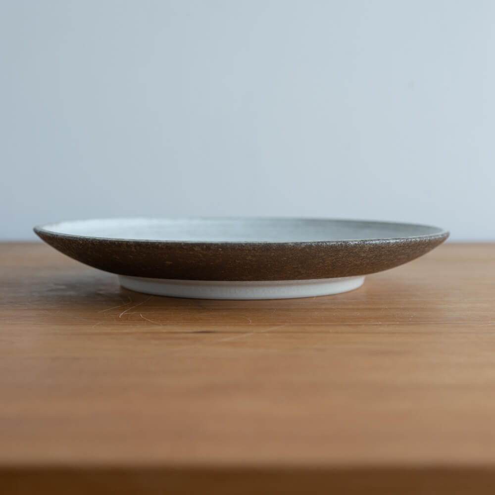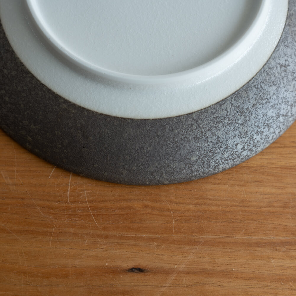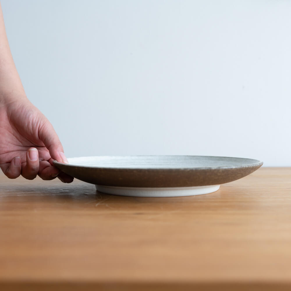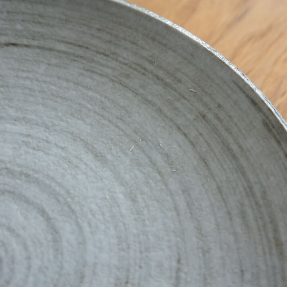 器全体に広がる同心円の模様は、ろくろで成形された跡を生かしたもの。シンプルでありながら、料理を中心へと導く視覚効果があり、食卓に動きを添えてくれます。