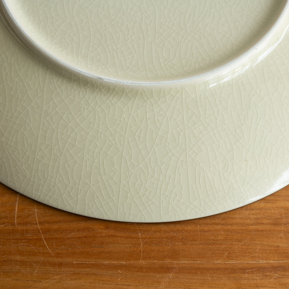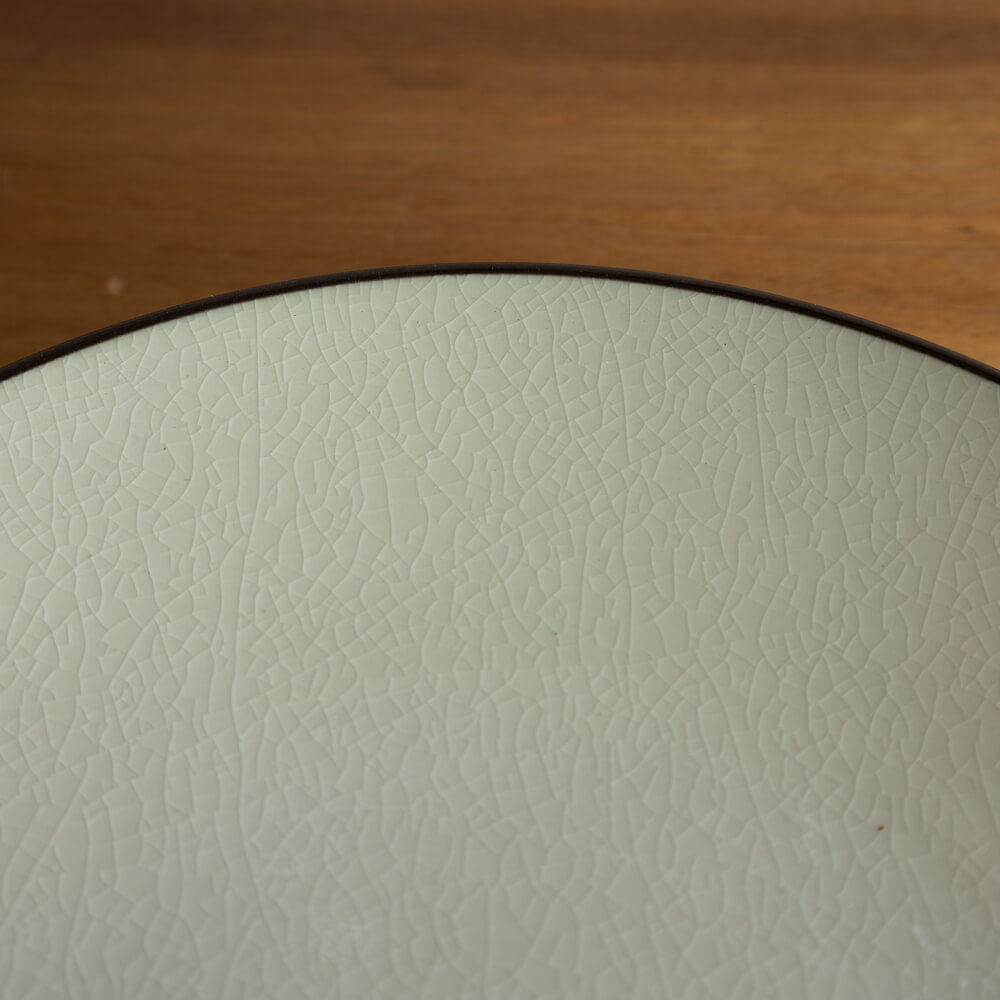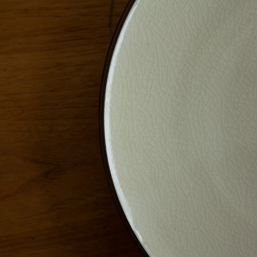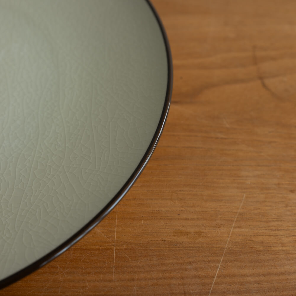 表面いっぱいに広がる細かなひび模様は、器の味わいを際立たせる装飾のひとつ。時間の経過とともにさらに奥行きが増し、料理を盛るたびに異なる表情を見せてくれます。
