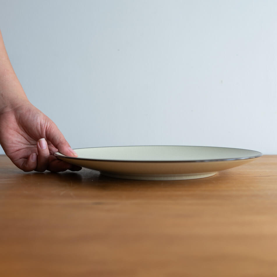 製造工程で生じる 細かい傷や色むら、黒点(鉄粉)などが見られる場合がありますが、それも焼き物ならではの味わいの一部。アウトレット品としてお求めやすい価格で提供されているため、気軽に取り入れやすい大皿です。
