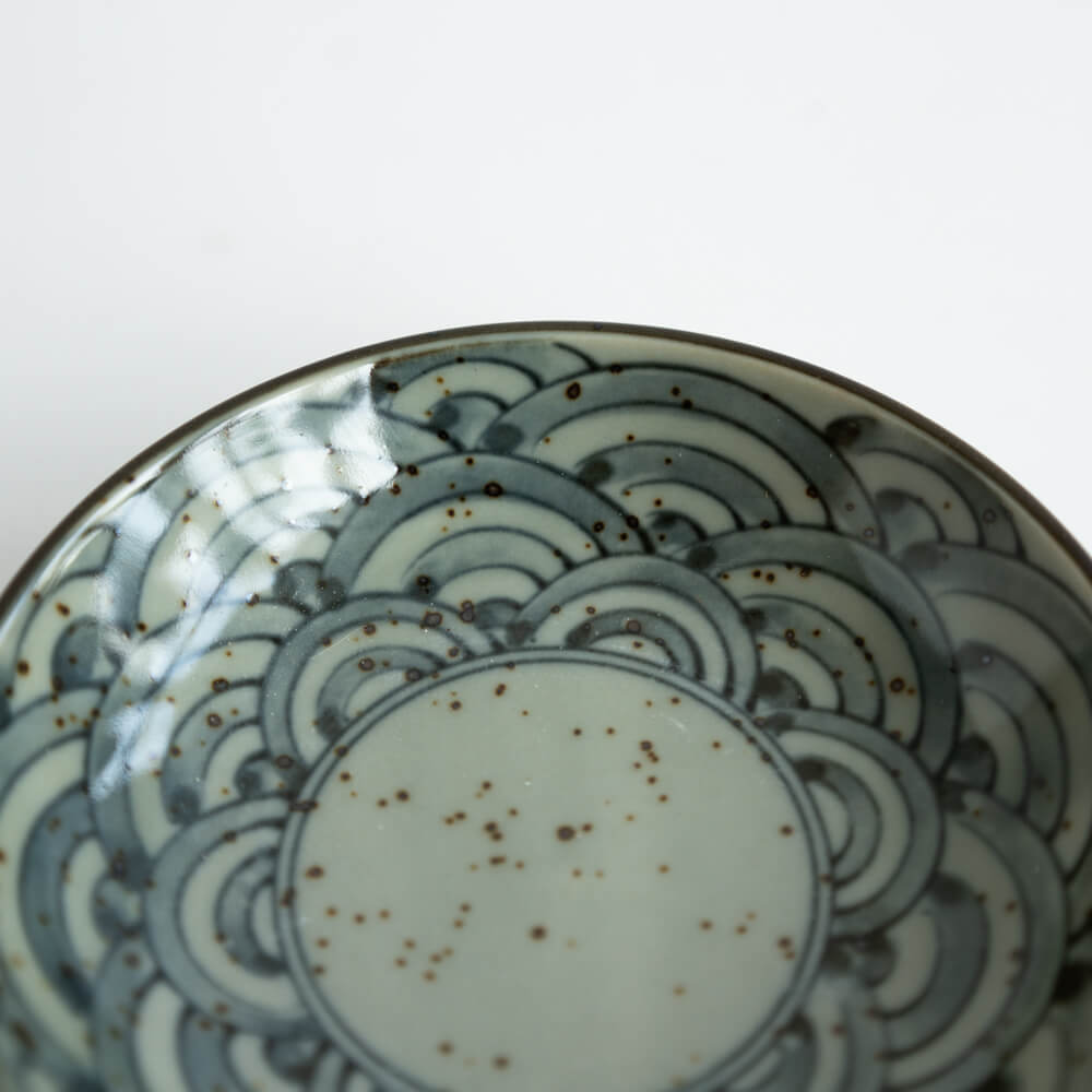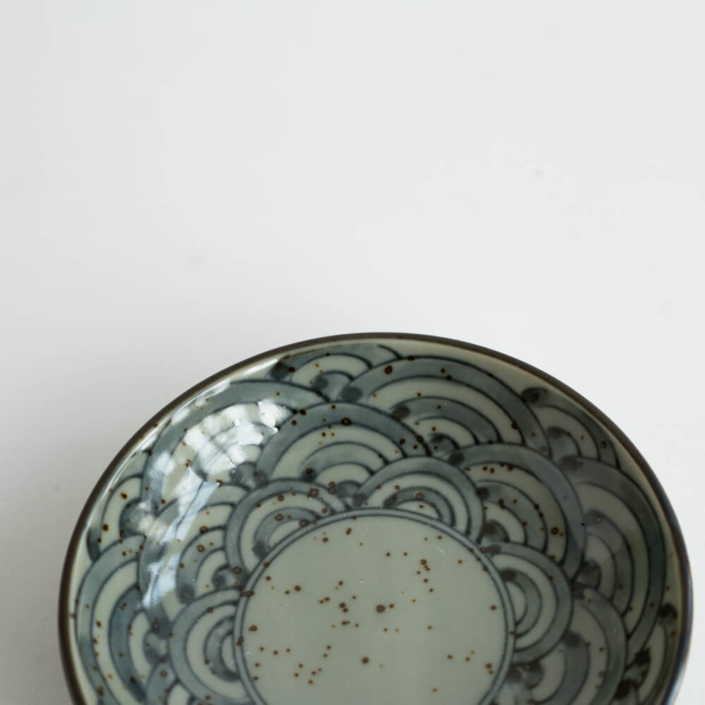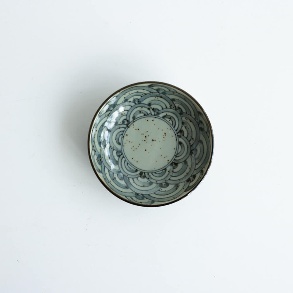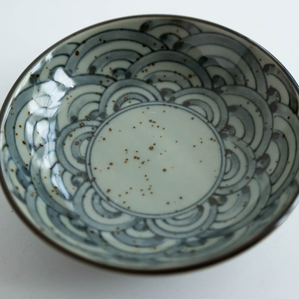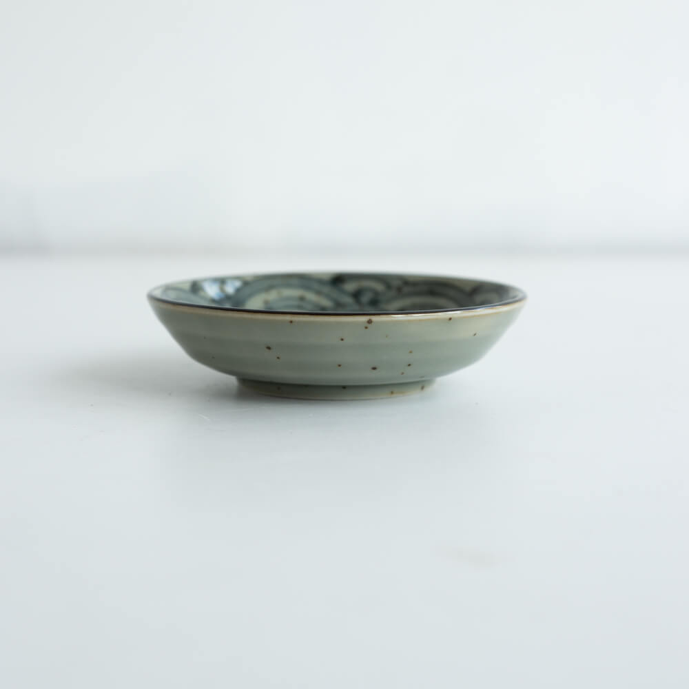 直径約10cmの大きさは、薬味や醤油皿、小さなお菓子皿として最適。いくつか揃えて並べれば、青海波のリズムが食卓に広がります。