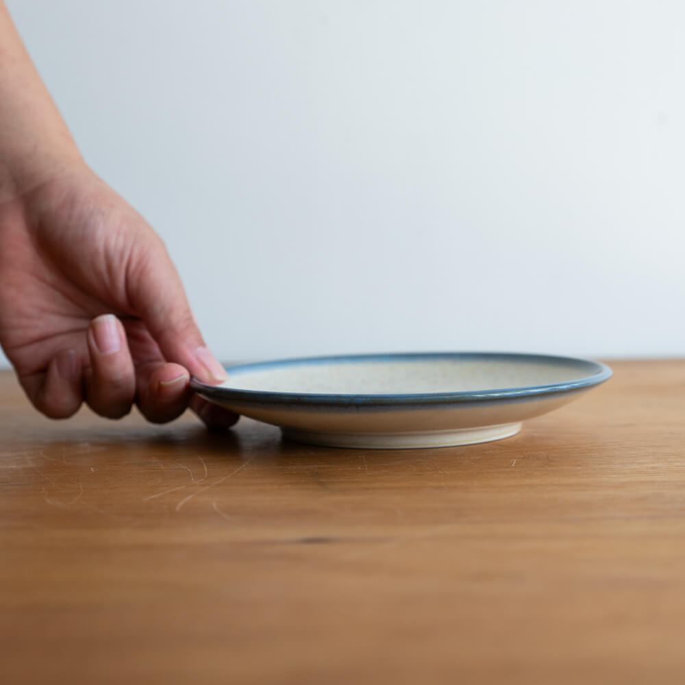 製造工程で生じる 細かい傷や色むら、黒点(鉄粉)などが見られる場合がありますが、それも焼き物ならではの味わいの一部。アウトレット品としてお求めやすい価格で提供されているため、気軽に取り入れやすい5寸皿です。