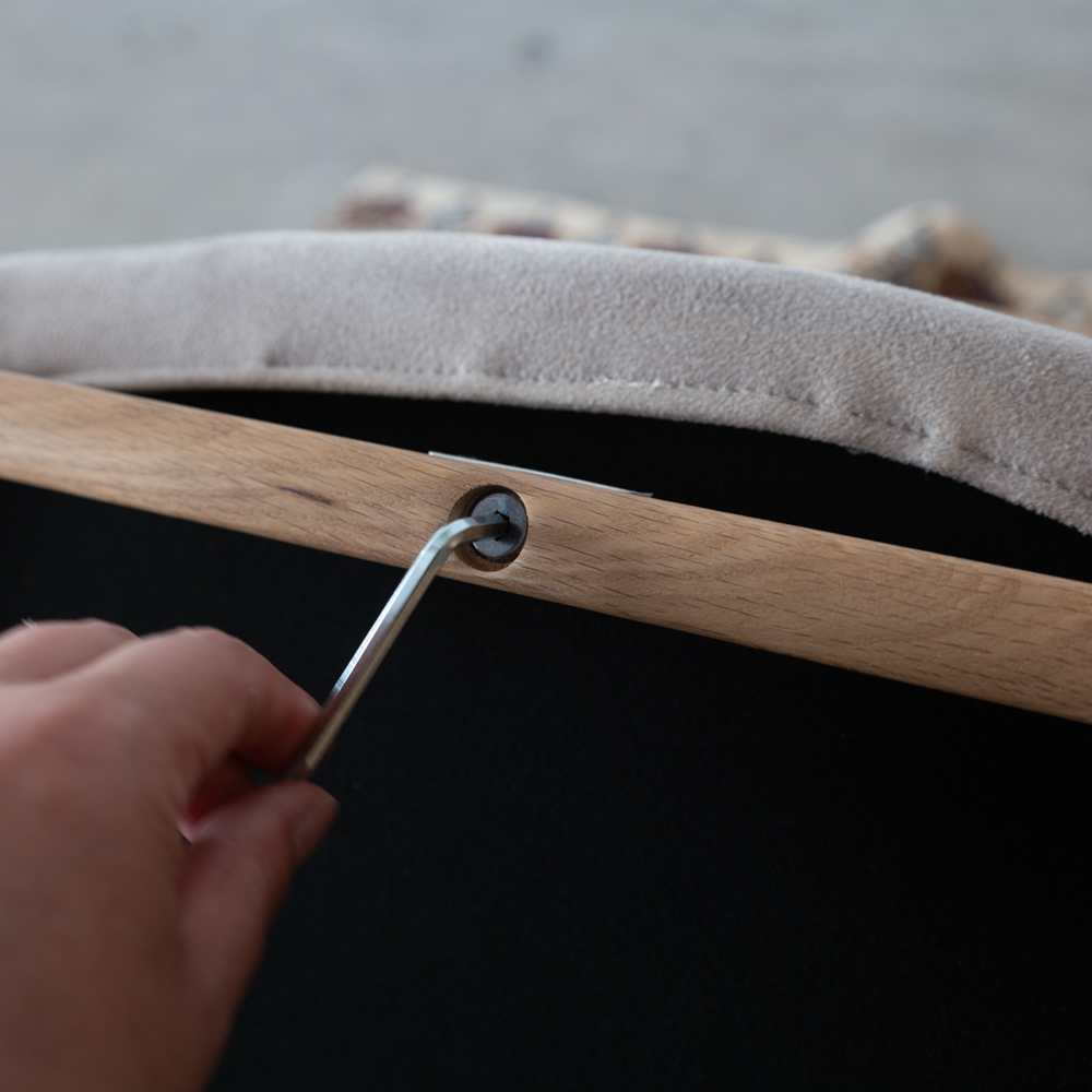 座面はカバーリング仕様で取り外しが可能。ご家庭で洗濯できるため、いつでも清潔を保てます。小さなお子さまがいるご家庭や、日常的に使う食卓でも安心です。
