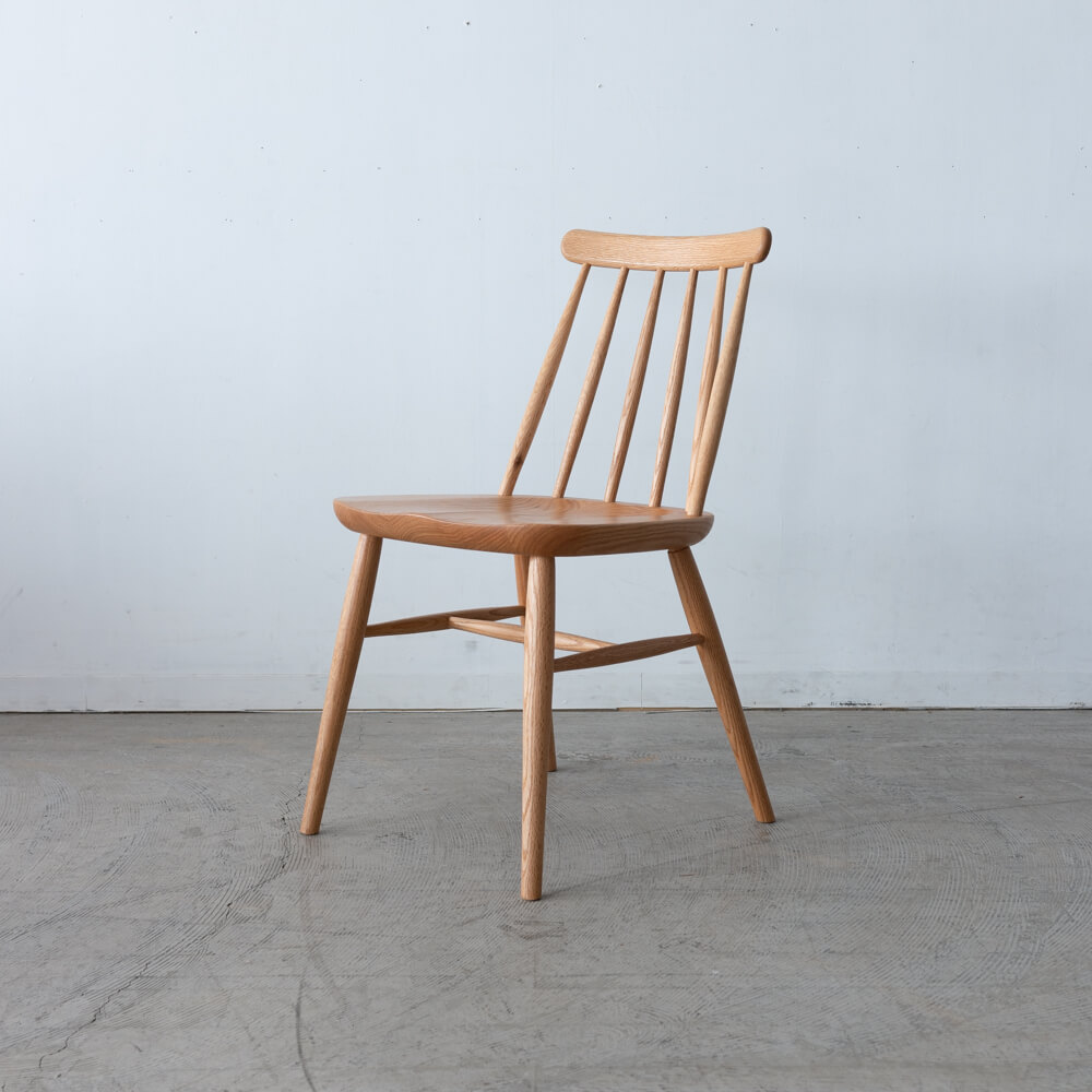 ウィンザーデザインを現代的にアレンジ。軽快で扱いやすく、木の温もりが直に伝わる板座仕様。