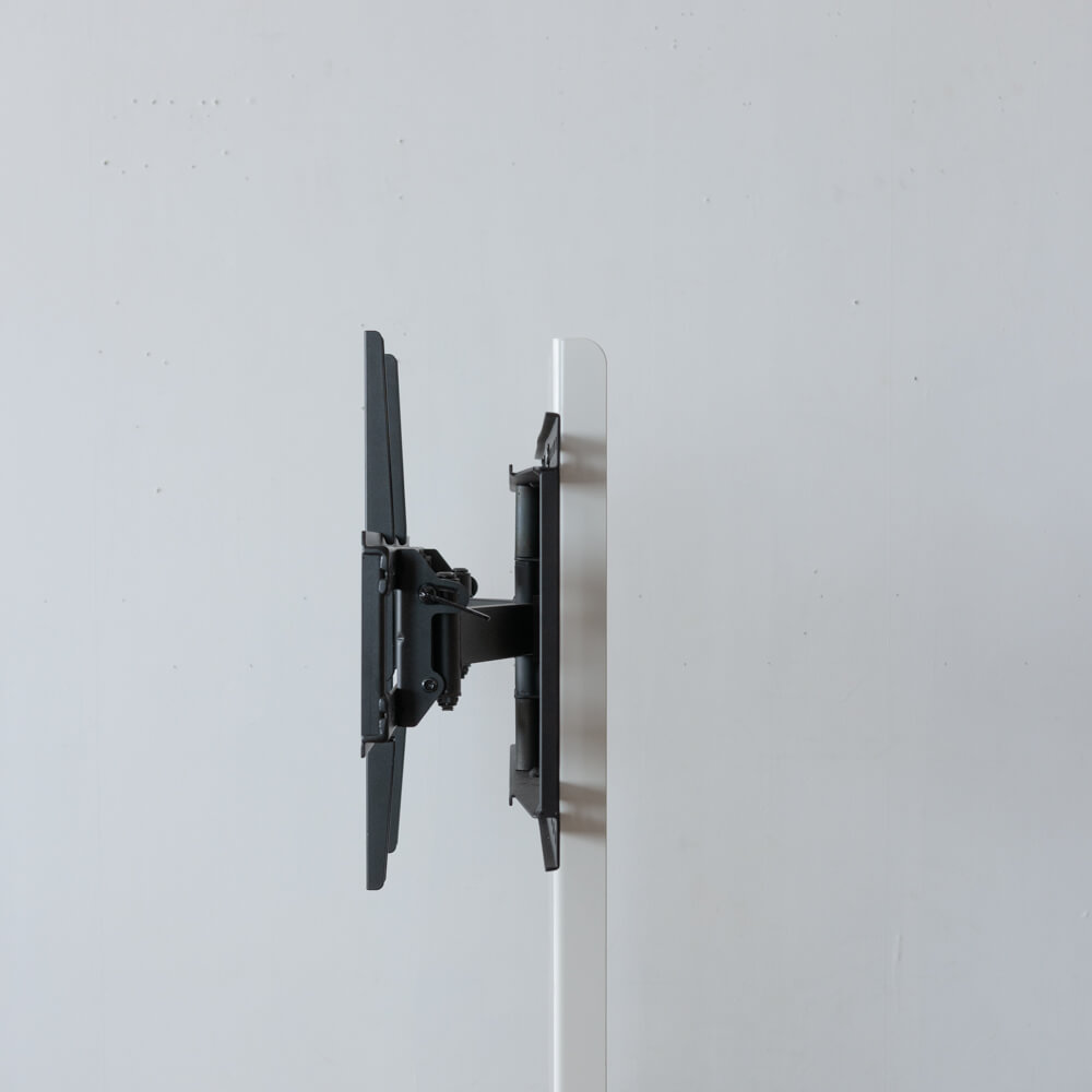 左右に角度調整ができるスイーベル金具付き。ソファやダイニングなど、部屋のどこからでも見やすい角度に合わせられます。家族で過ごすシーンに応じて快適な視聴体験を。