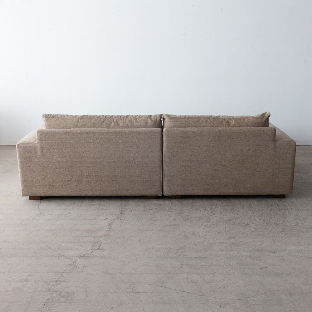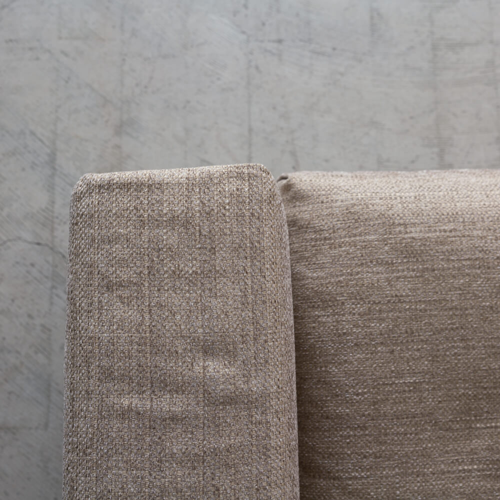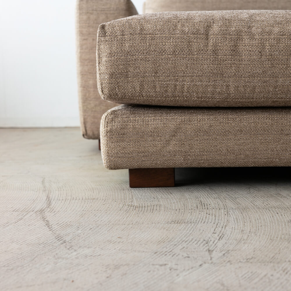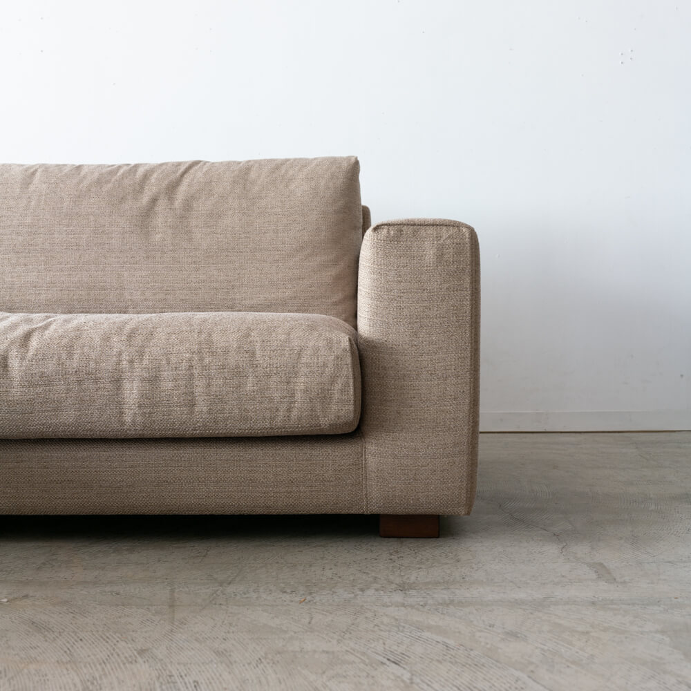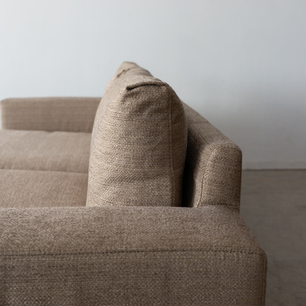 布K1は、ポリエステル86%・コットン14%の混紡素材。さらりとした手触りとやわらかな質感を兼ね備え、ナチュラルカラーが空間を軽やかに演出します。内部にはフェザーを贅沢に使用しており、座るたびに体を優しく包み込み、長時間でも疲れにくい快適な座り心地を実現。