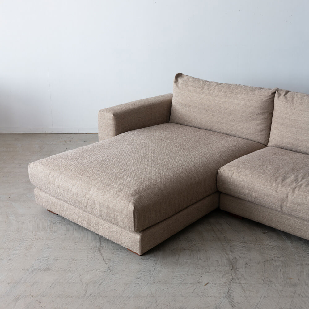 北欧モダンの空気感を漂わせながら、ナチュラルにもシックにも溶け込む「Crossover_F」シリーズ。落ち着いた布K1(ポリエステル×コットン)をまとい、直線的なシルエットとホワイトオークの脚部が、空間をすっきりと彩ります。ゆったり足を伸ばせるL字型のカウチ仕様で、リビングに安らぎの時間をもたらす一台です。