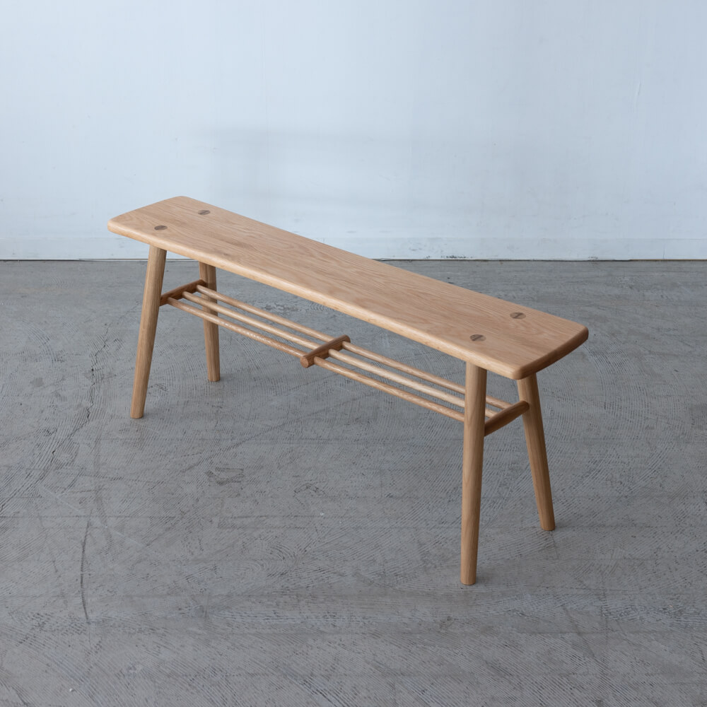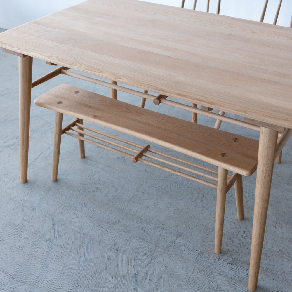 自然の風合いをそのまま活かしたホワイトオーク材は、堅牢さと温かみを併せ持つ素材。時間とともに色艶が深まり、暮らしの風景に溶け込みながら美しく育っていきます。