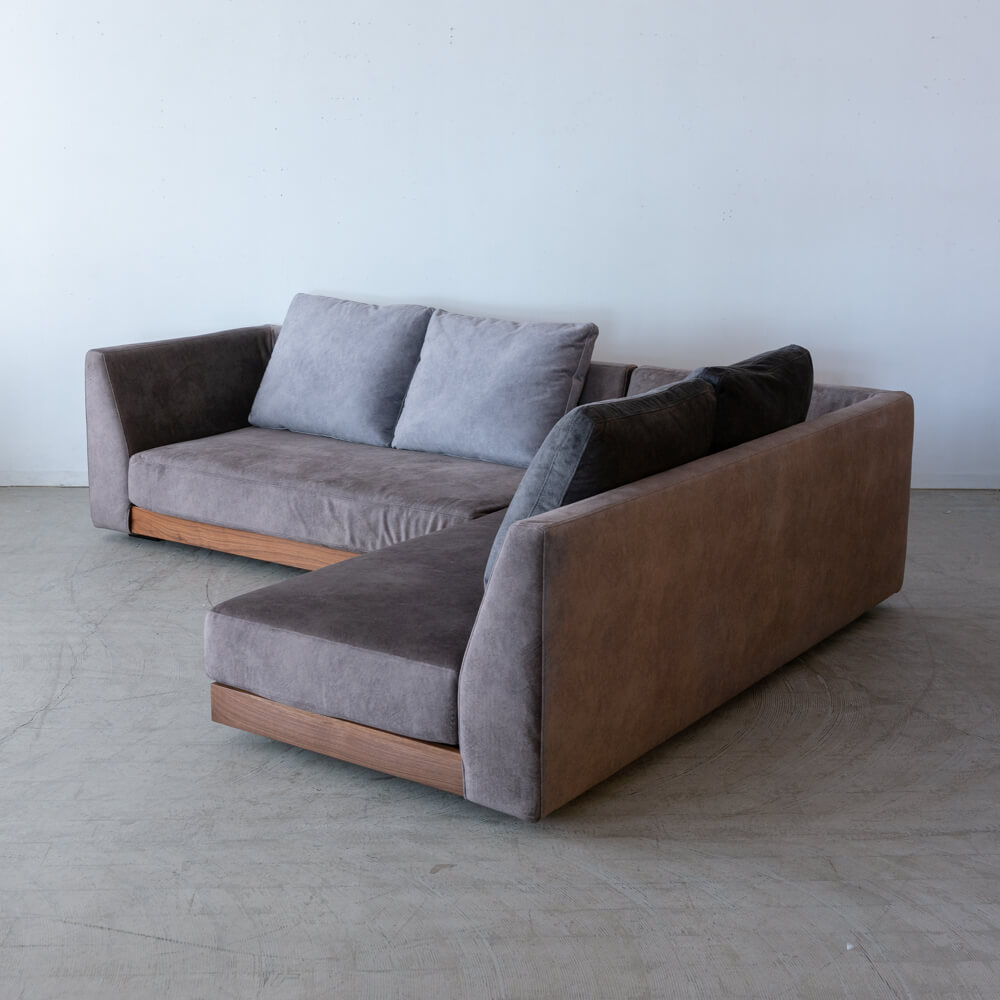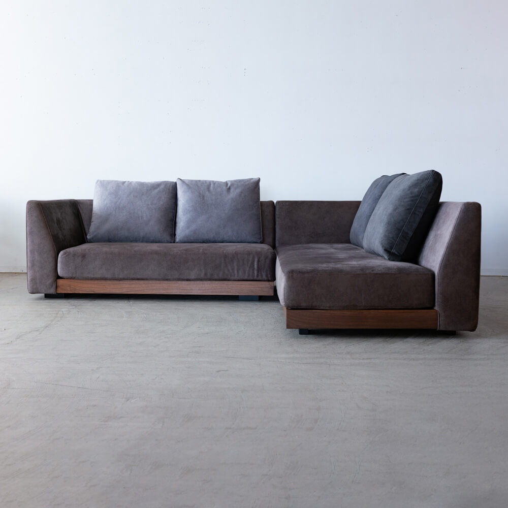 重厚感と上質さを兼ね備えた《リーヴァ コーナーソファ》。天然木ウォールナットの美しい木目と、大理石のような模様をプリントしたマーブル生地が調和し、現代的で落ち着いた空間を演出します。フルカバーリング仕様で実用性にも優れ、長く心地よくお使いいただける一台です。また、コーナーセットとして贅沢にお選びいただくことも、片側ソファを単体で取り入れることも可能。暮らしに合わせた柔軟なセレクトが叶います。