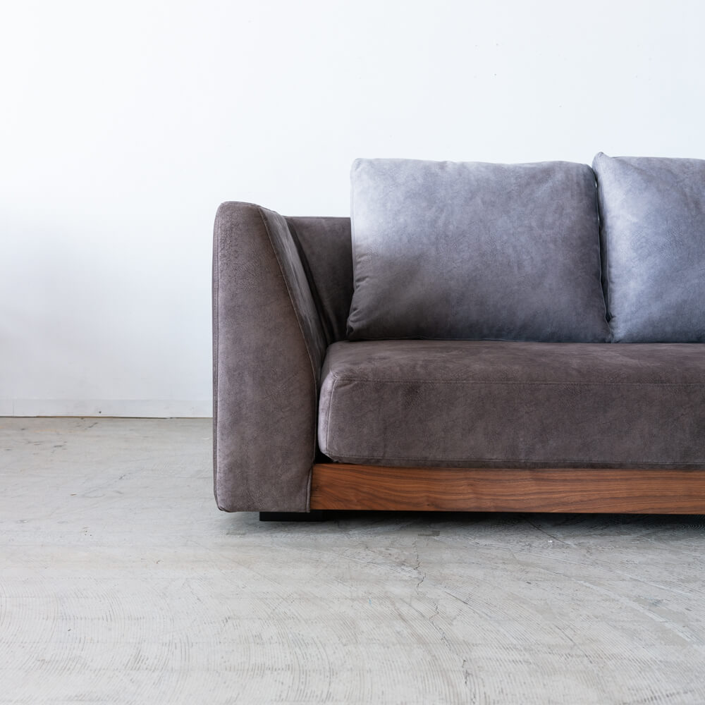 脚部には高級材ウォールナット無垢材を使用。オイル塗装により木の呼吸を妨げず、経年変化でさらに深みを増していきます。北欧や和モダンの空間とも自然に調和します。