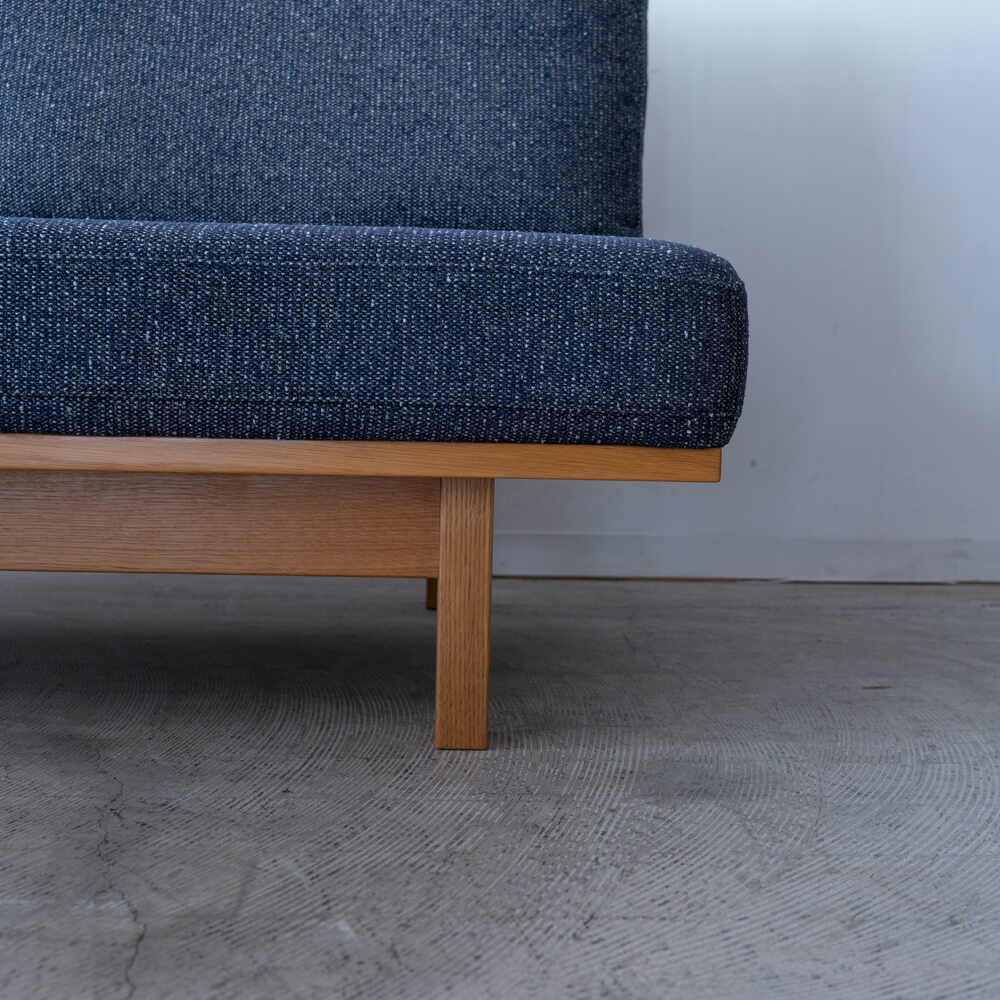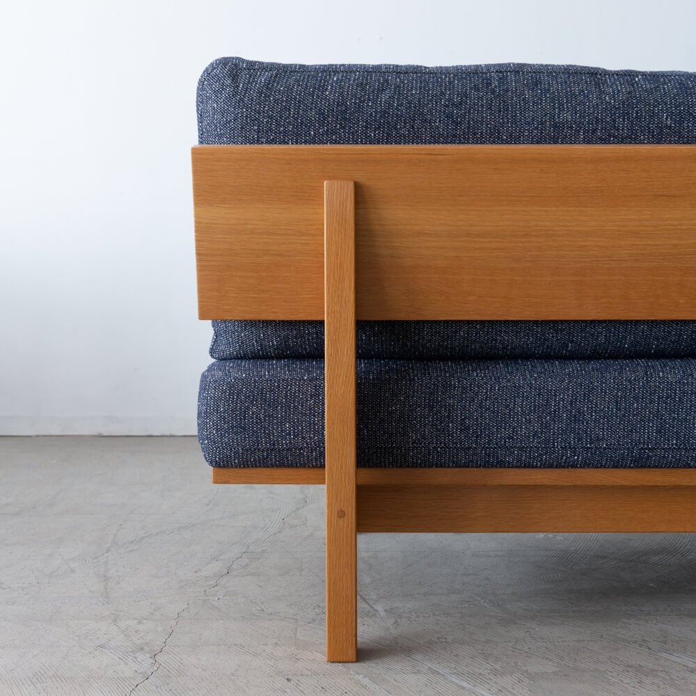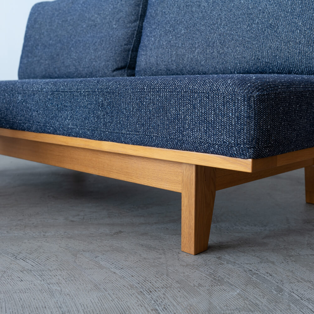 フレームにはホワイトオークを採用。明るくやさしい木肌と美しい木目は、北欧インテリアやナチュラルモダンな空間に自然に溶け込みます。無垢材ならではの耐久性と経年変化の楽しみも魅力です。