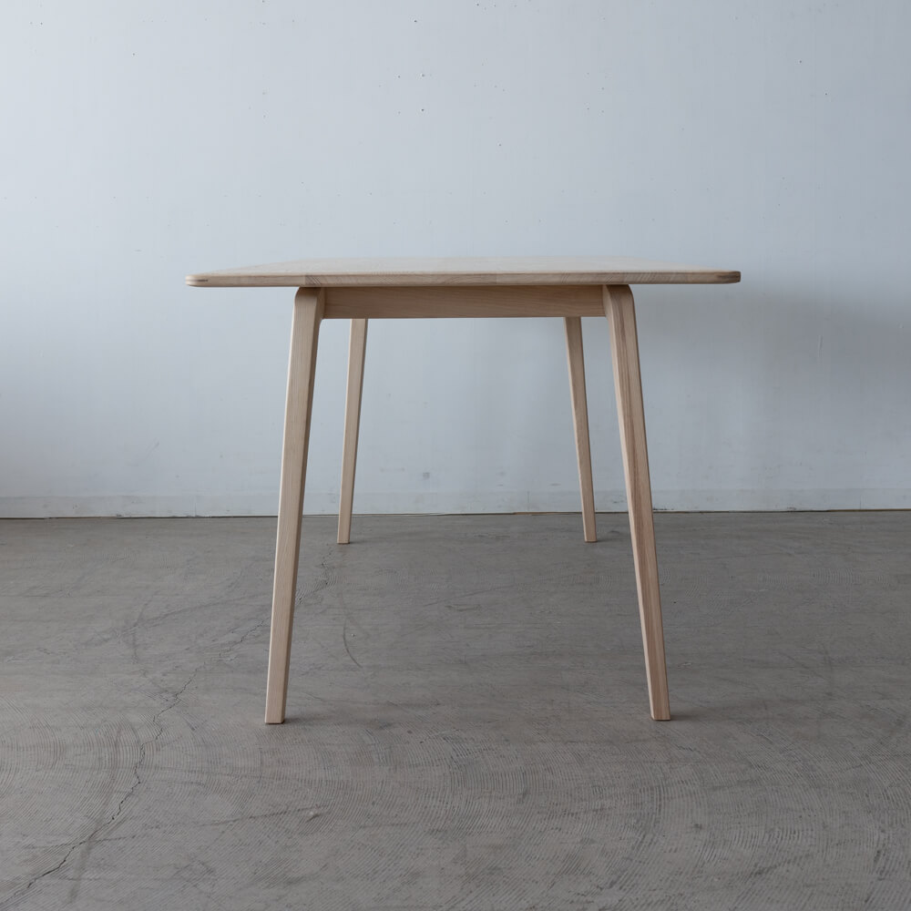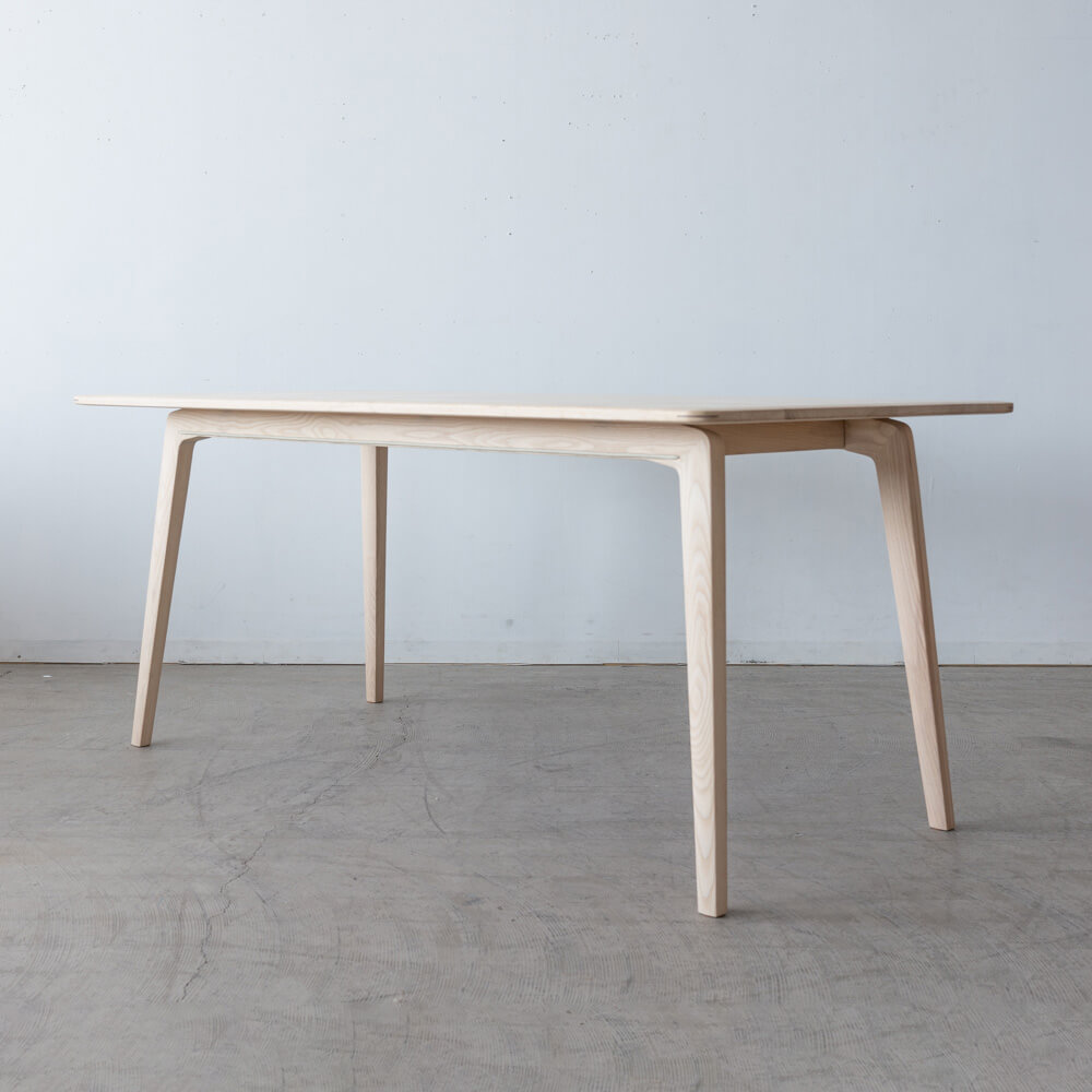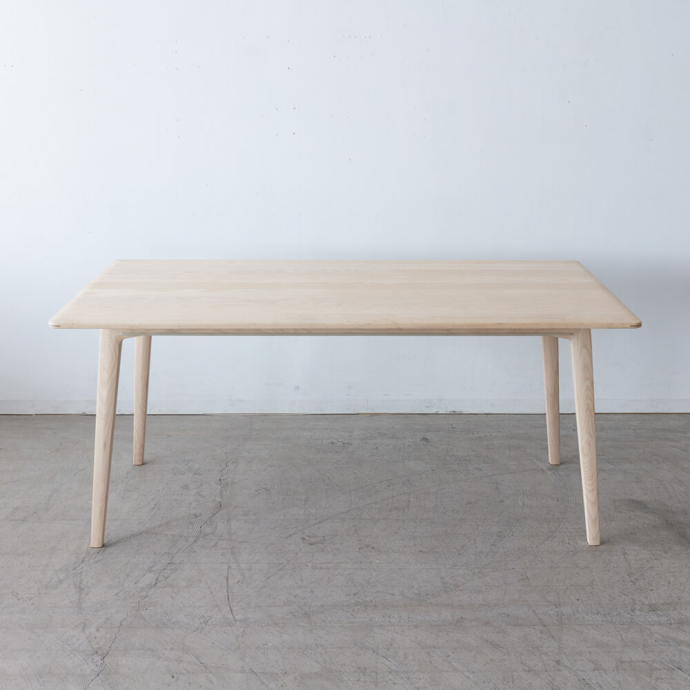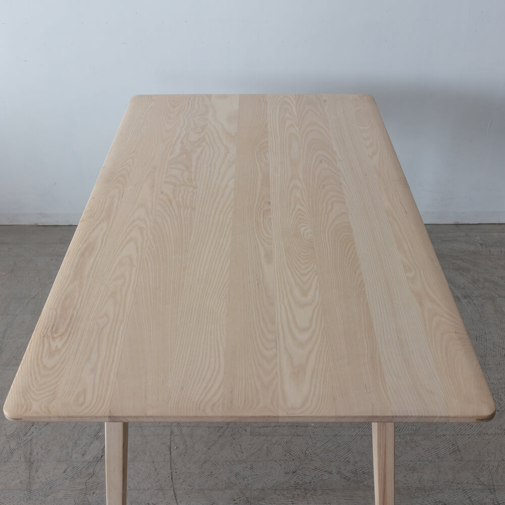 日々の食卓を、自然の質感で満たす一台。ELEGANCEシリーズのダイニングテーブル160は、ホワイトアッシュ材をソープ仕上げで丁寧に磨き上げた、北欧の風を感じるデザインです。シンプルで軽やかな佇まいながら、木が本来もつ温もりと美しさを余すことなく引き出しています。