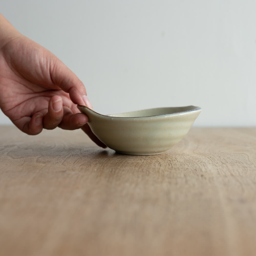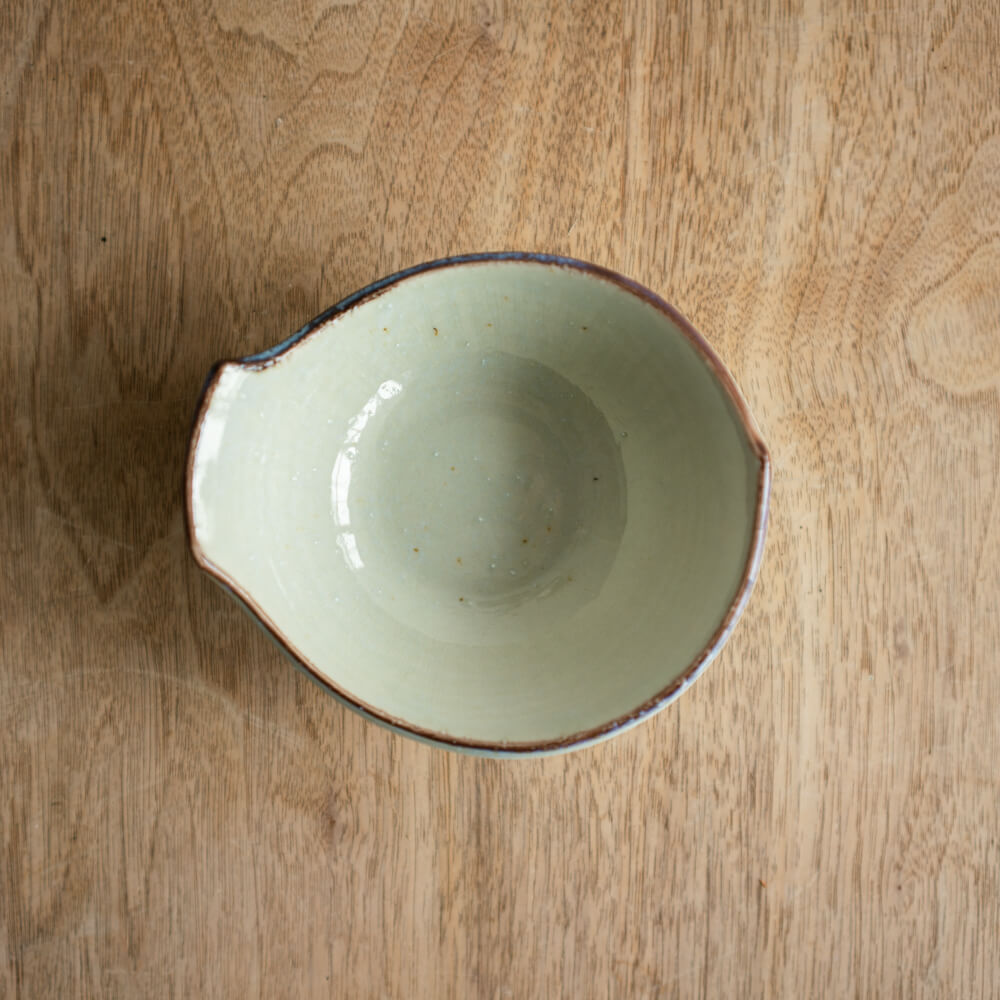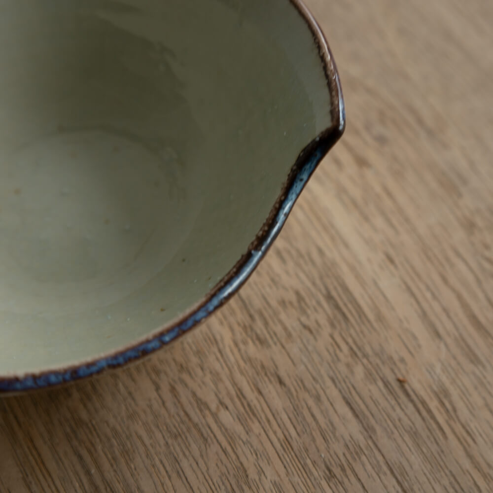 注ぎ口ではなく、なだらかに波打つ縁のラインが、器全体にやさしい印象を与えます。