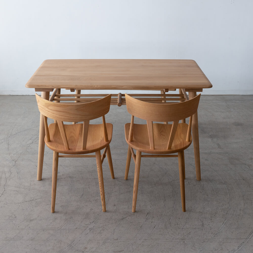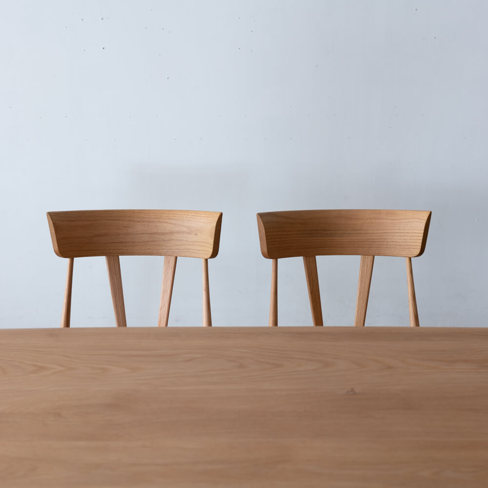 セットのチェアには、伝統的なウィンザーデザインをベースに軽量化を施した「シンチェア」を組み合わせています。