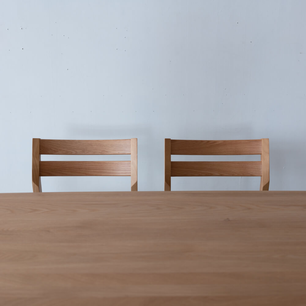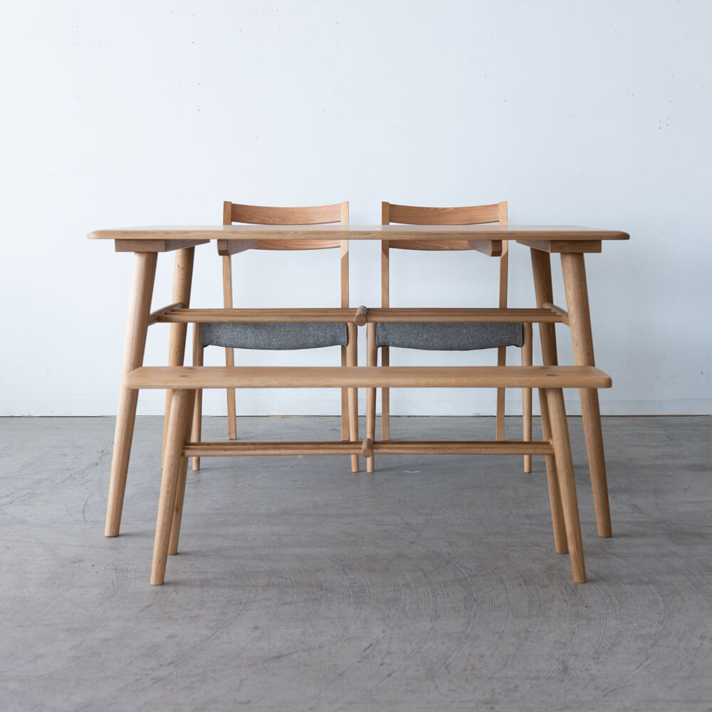 テーブルとベンチにはホワイトオーク無垢材を贅沢に使用。堅牢でありながら、木目の優しい表情が空間に自然と馴染み、時間の経過とともに深みを増していきます。オイル仕上げによって木が自然に呼吸し、日々の暮らしとともに育つ家具です。
