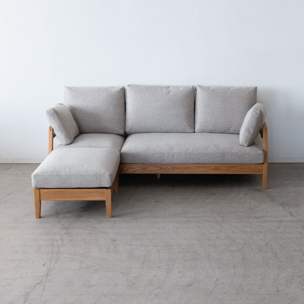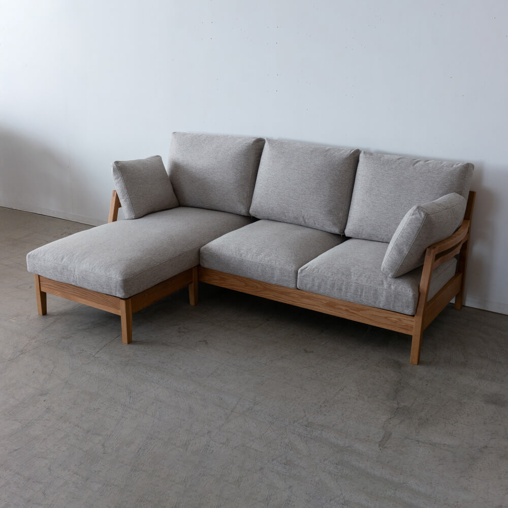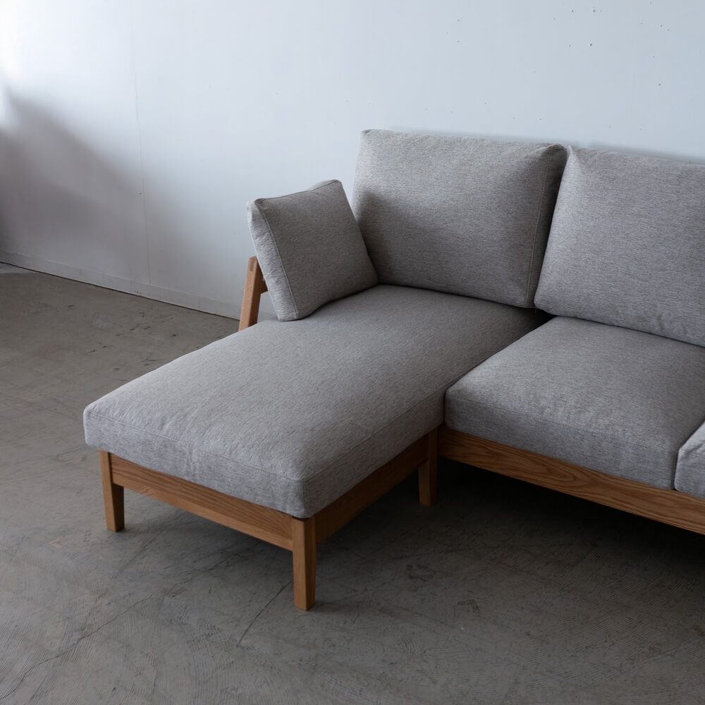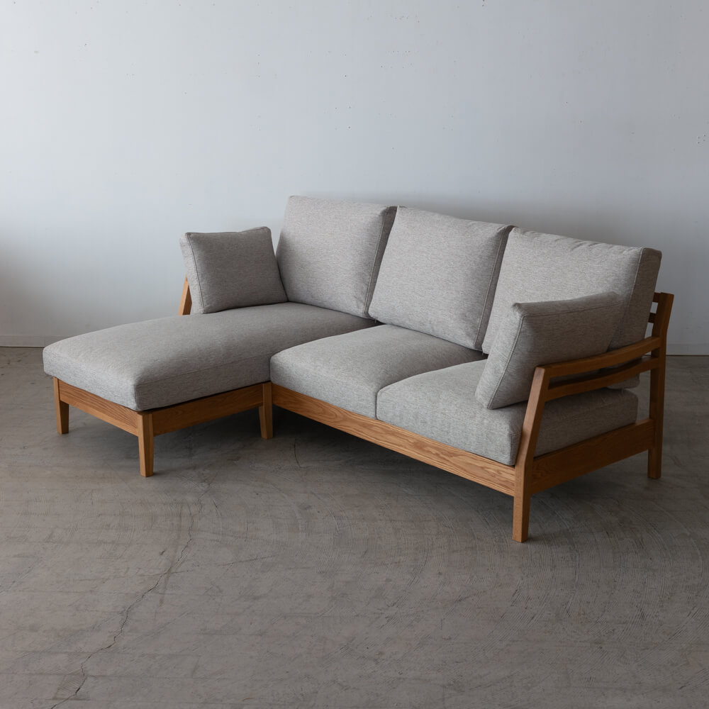 [現品SALE]スタン ソファセット レッドオーク/ オイル仕上げ 張地:ランクOブランカ / ダークグレー(ソファ140+シェーズソファ70(クッション付き))