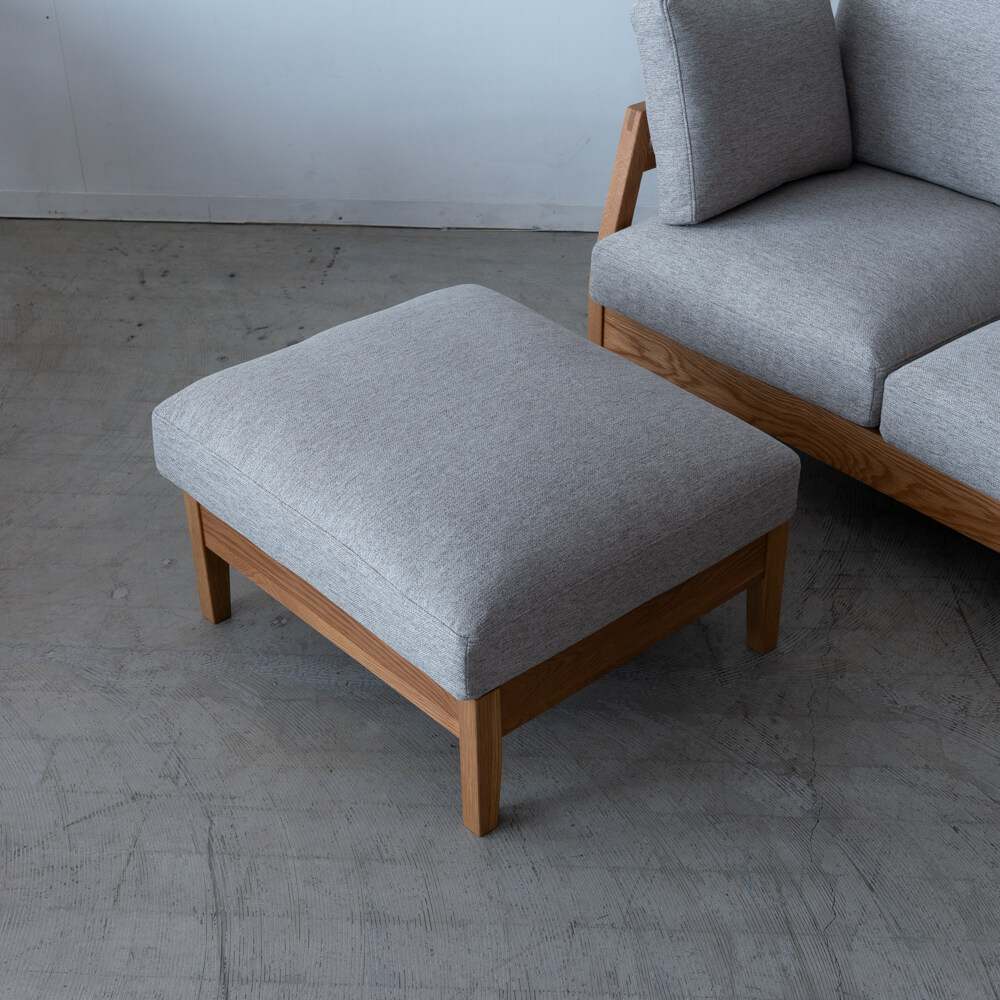 カウチとしてオットマンを組み合わせれば、足を伸ばしてより深いリラックスへ。来客時にはスツールとしても使える万能なアイテムです。暮らしのシーンに合わせて、自由なくつろぎを叶えます。