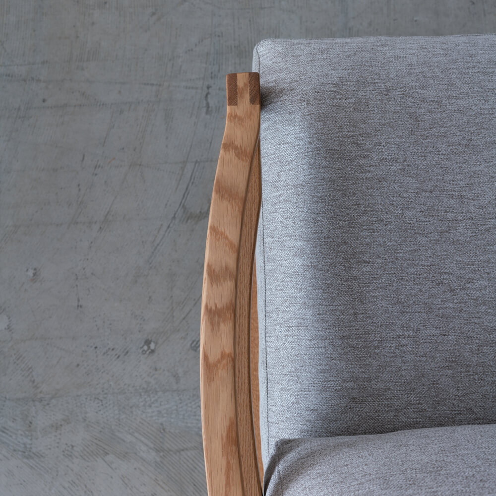 座面と背クッションには、スモールフェザー100%を使用し、ふんわりとした感触を実現。さらに積層ウレタンを組み合わせることで、沈み込みすぎず、しっかりと支える座り心地に仕上げています。長時間座っても疲れにくく、読書や映画鑑賞にも最適です。