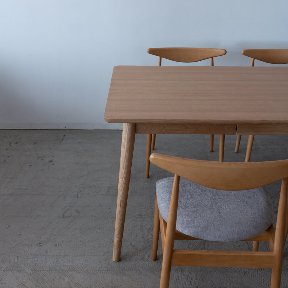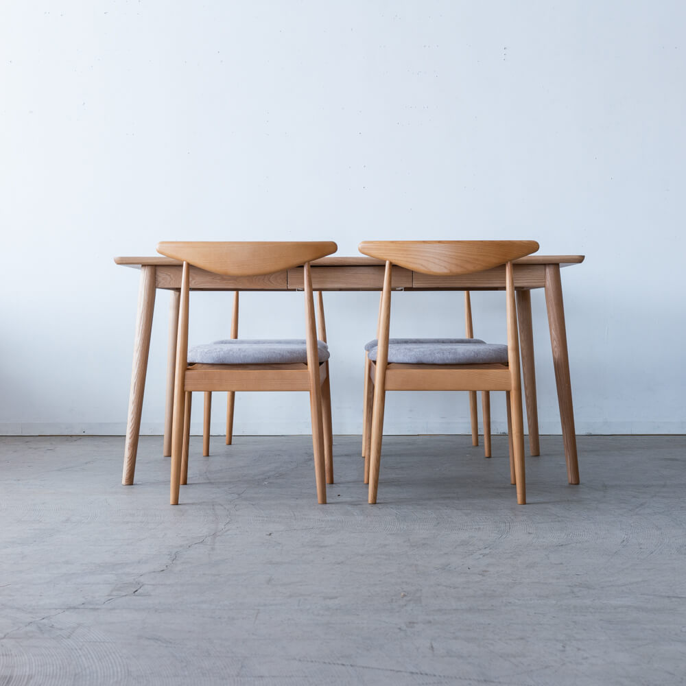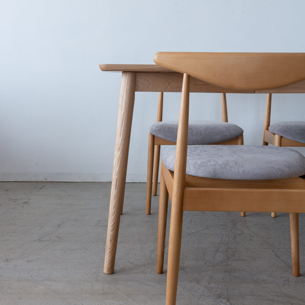 アッシュ材のフレームに、グレーカラーの座面が落ち着いた印象をプラス。張り込み仕様の座面はクッション性があり、長時間座っても疲れにくい仕上がりです。