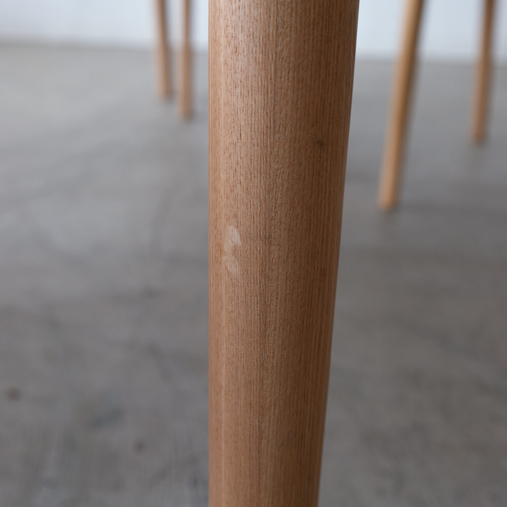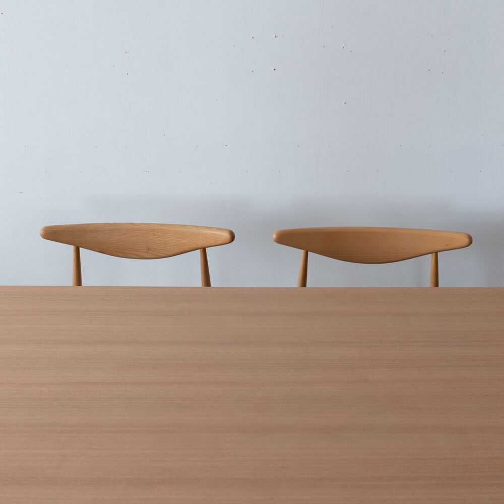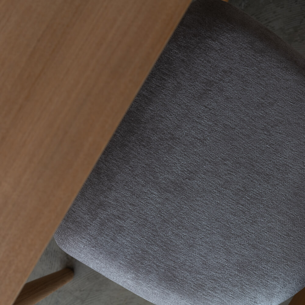 背もたれは、やさしく背中にフィットするようしなやかに湾曲したデザイン。アッシュ材の美しい木目と曲線のラインが柔らかな印象を与え、座ったときの安心感と包まれるような心地よさを生み出します。長時間の食事や団らんの時間でも、自然と姿勢が保たれやすいのも魅力です。