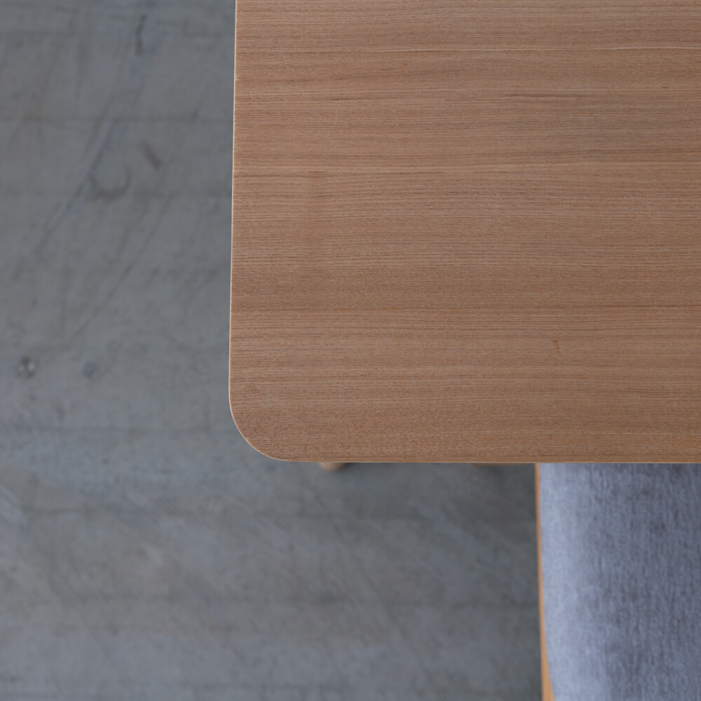 脚まわりをスッキリ見せる細身のライン設計。圧迫感がなく、ダイニングの空間に「余白」と「抜け感」を生み出します。丸みを帯びた角がやさしい印象を与え、小さなお子さまのいるご家庭にも安心です。