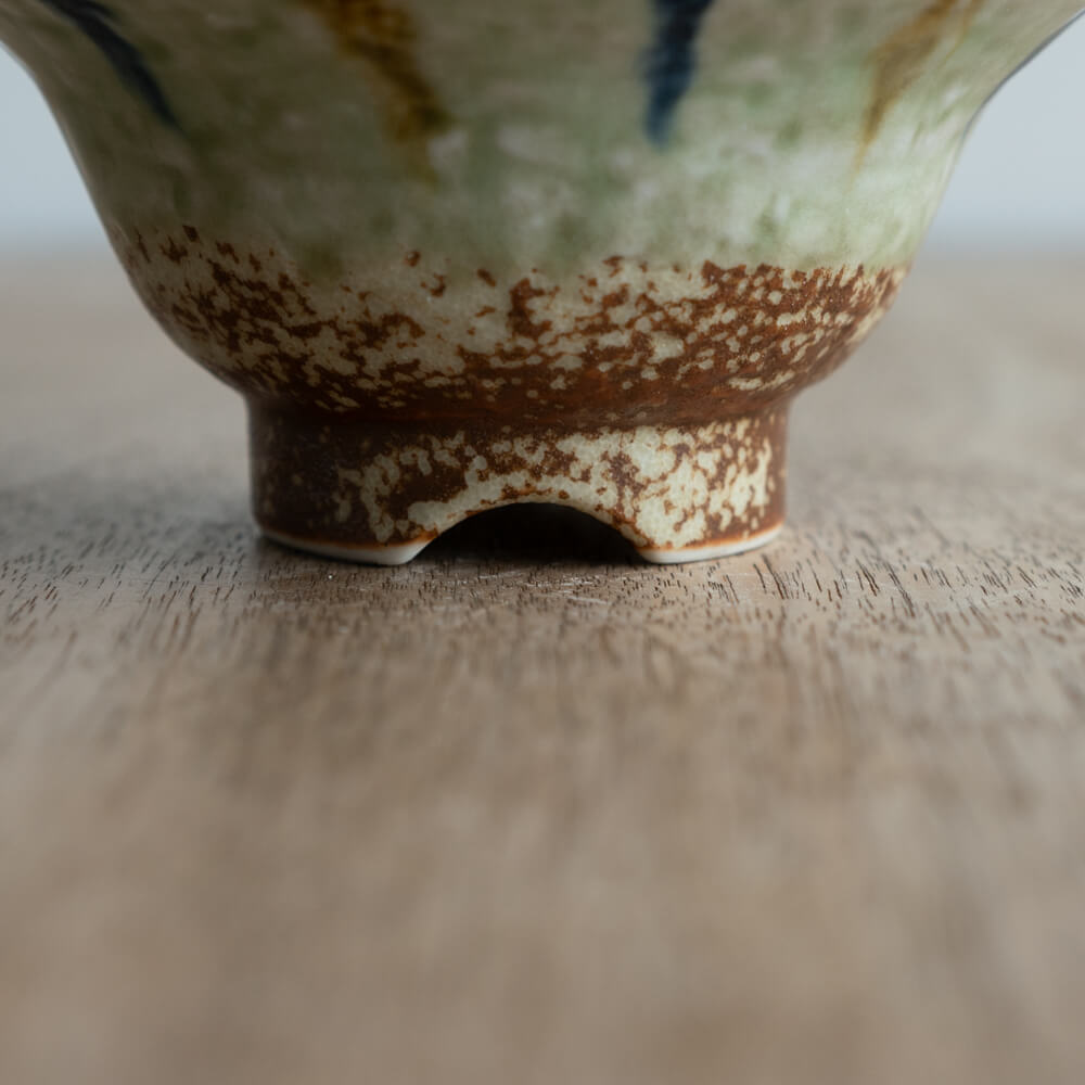 釉薬のかかっていない高台部分は、土の素朴な質感がそのまま残されています。釉薬とのコントラストが、より一層この器の深みを引き立て、長く愛用するほどに味わいが増していきます。