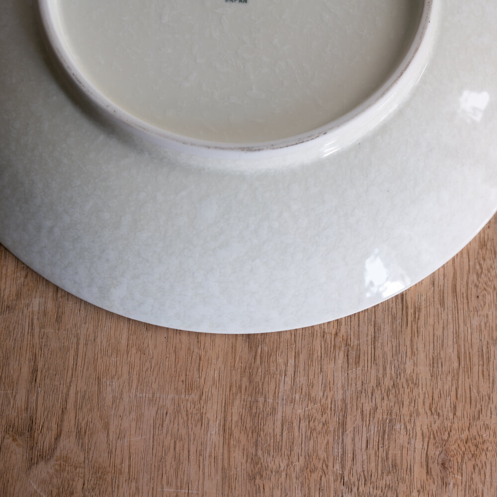 製造工程で生じる 細かい傷や色むら、黒点(鉄粉)などが見られる場合がありますが、それも焼き物ならではの味わいの一部。アウトレット品としてお求めやすい価格で提供されているため、気軽に取り入れやすい大皿です。