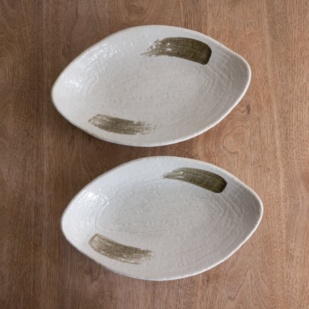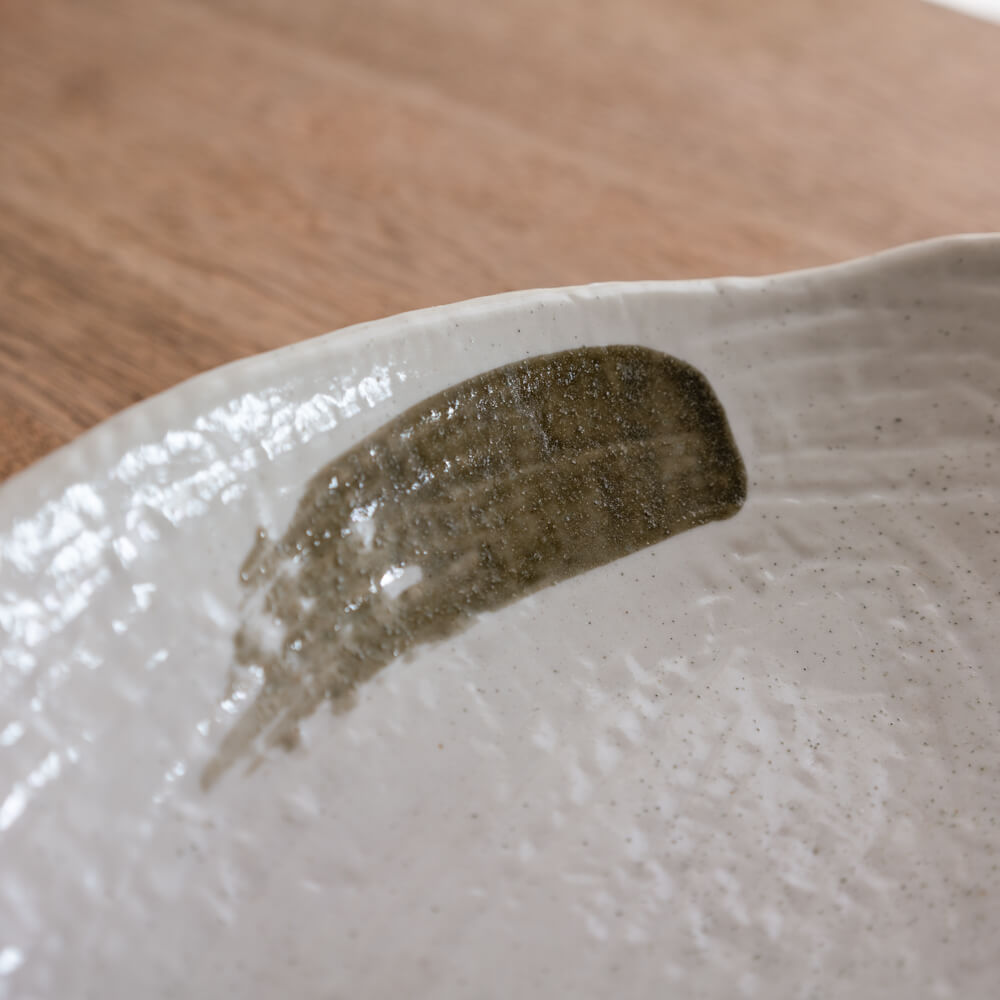 筆で描いたような刷毛目が、素朴でありながらも印象的なアクセントに。和洋どちらの料理にも合わせやすく、盛り付けるだけで料理にニュアンスが加わります。