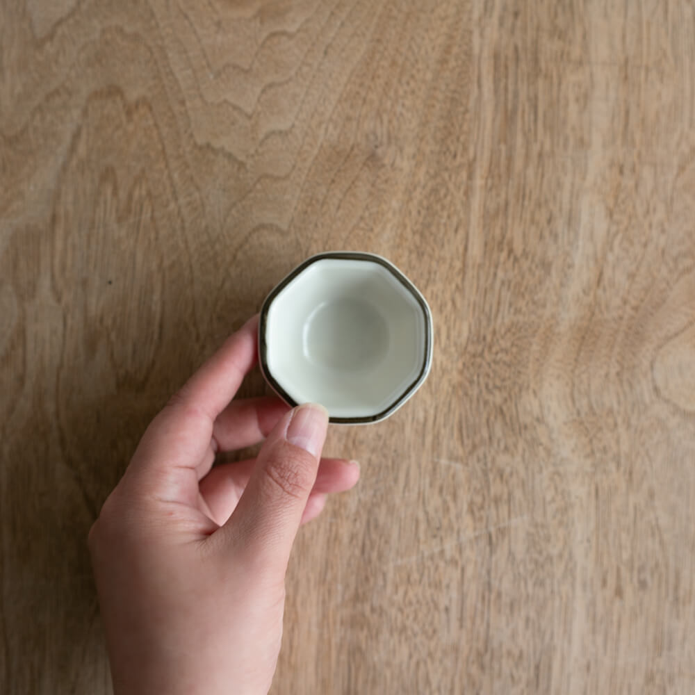 角のあるフォルムは、丸皿とは違った印象を与えます。整った八角形は和の趣を感じさせ、食卓の中で小さくても目を引く存在感に。