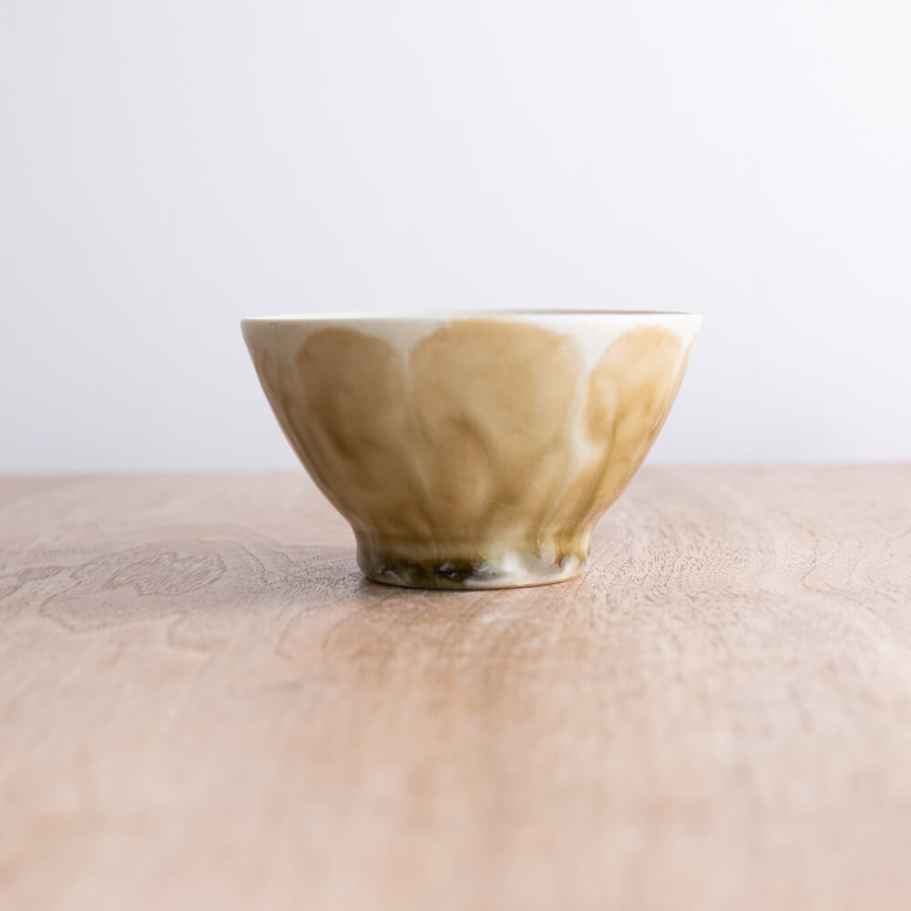 この茶碗の一番の魅力は、釉薬が自然ににじみ合って生まれる柔らかなベージュの濃淡。焼成の加減によって表情が異なり、ひとつひとつに個性が宿ります。素朴さと品の良さが同居した、手仕事ならではの味わいです。