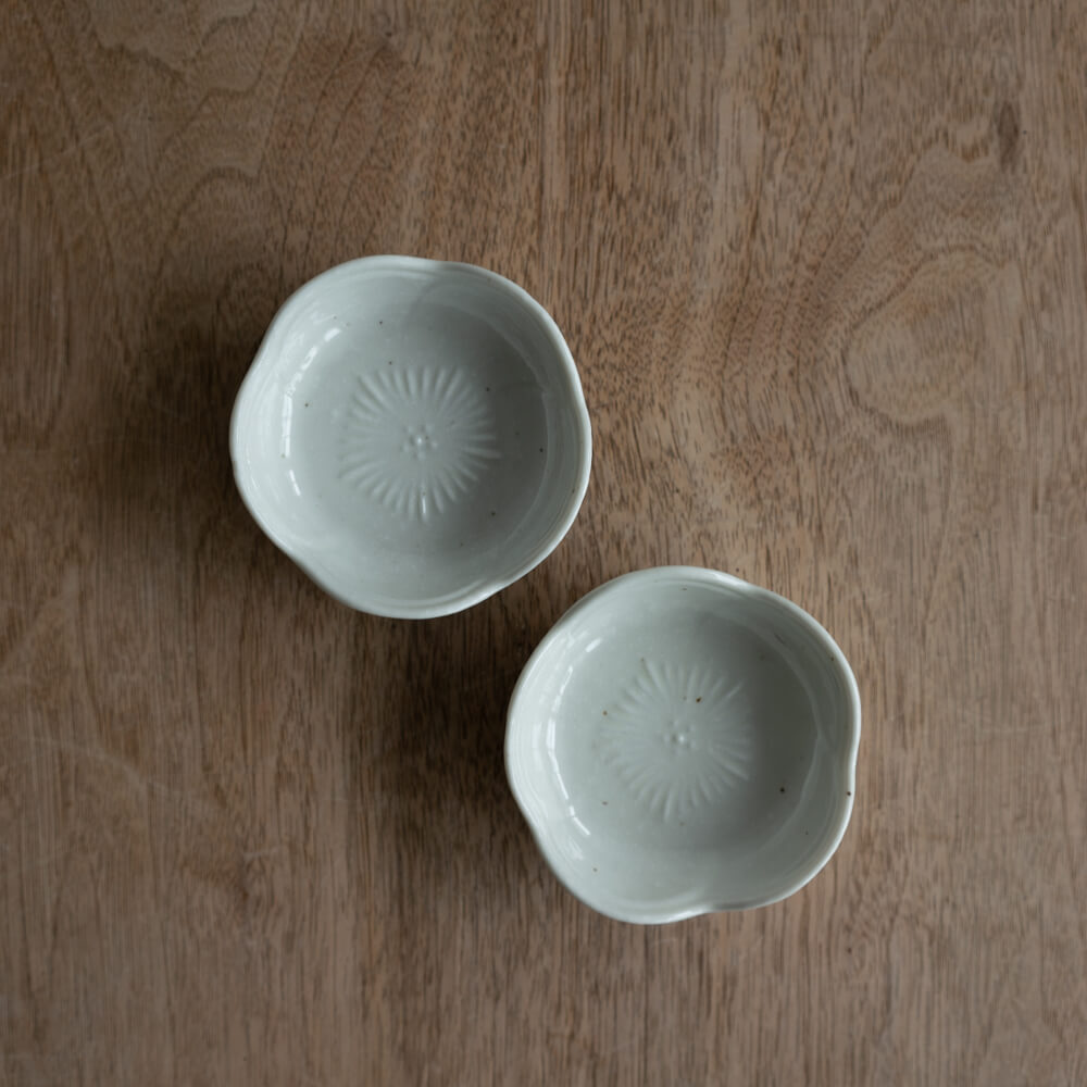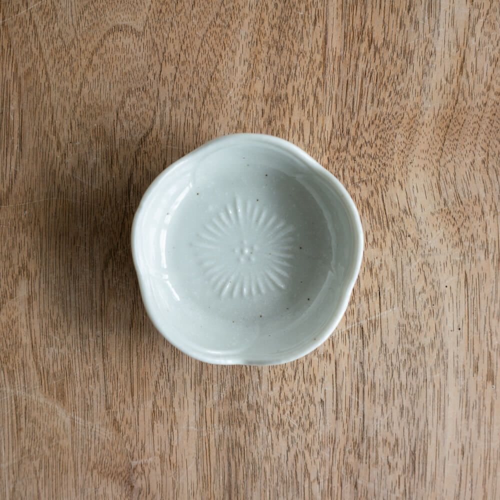 花びらのように波打つ縁が印象的な豆皿。主張しすぎないフォルムが、和の雰囲気にも洋のスタイルにも自然に馴染みます。複数枚を並べると、まるでテーブルの上に花が咲いたような華やかさに。