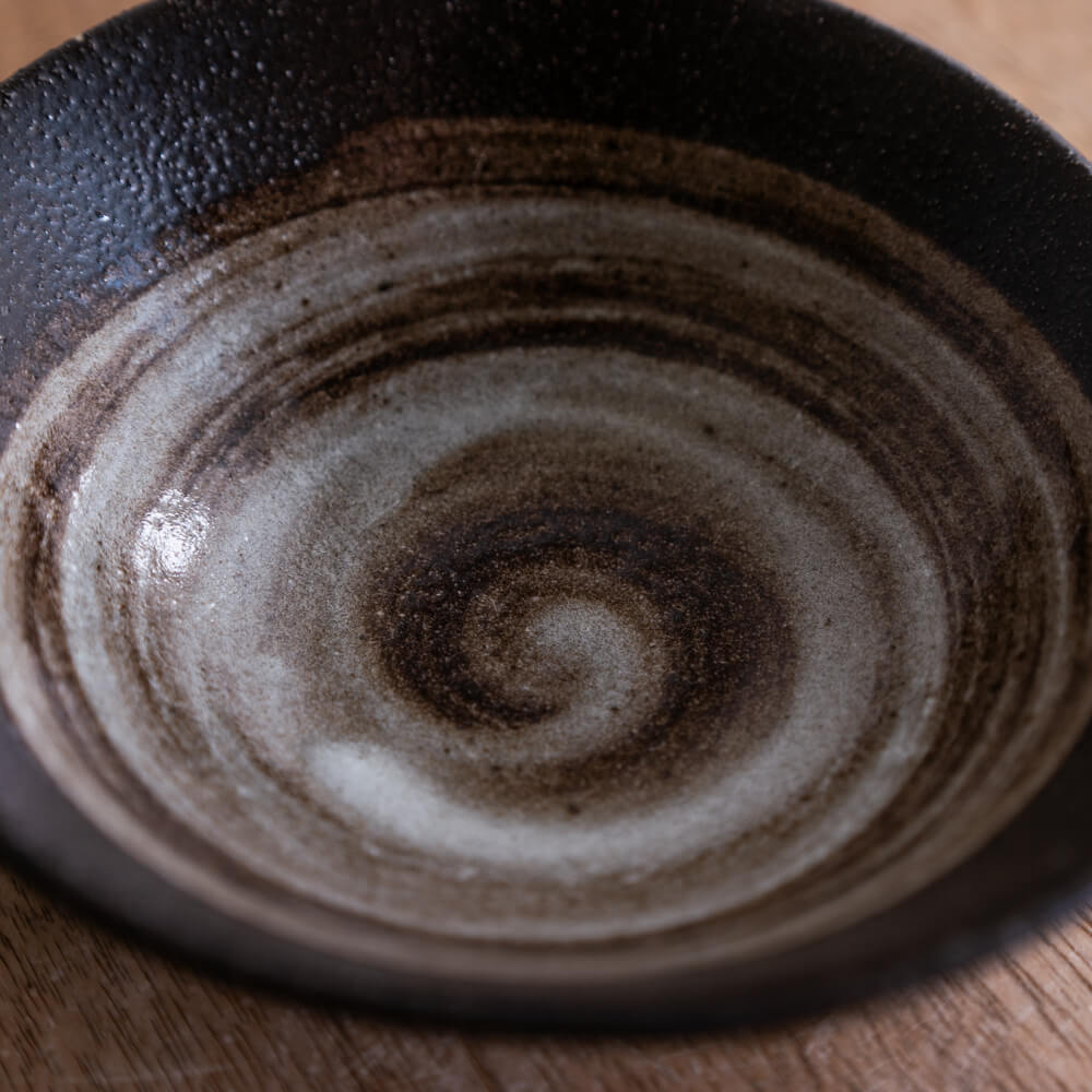 内側に広がる渦模様は、釉薬の流れによって生まれる自然な景色。柔らかな濃淡のグラデーションが、料理を美しく引き立てます。同じものが二つとない個性は、手仕事ならではの魅力です。