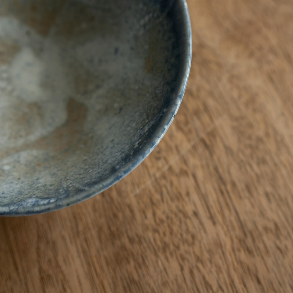 木製トレーやナチュラルな無垢材のテーブルと合わせると、釉薬の青がいっそうやさしく浮かび上がり、北欧ナチュラルな印象に。
